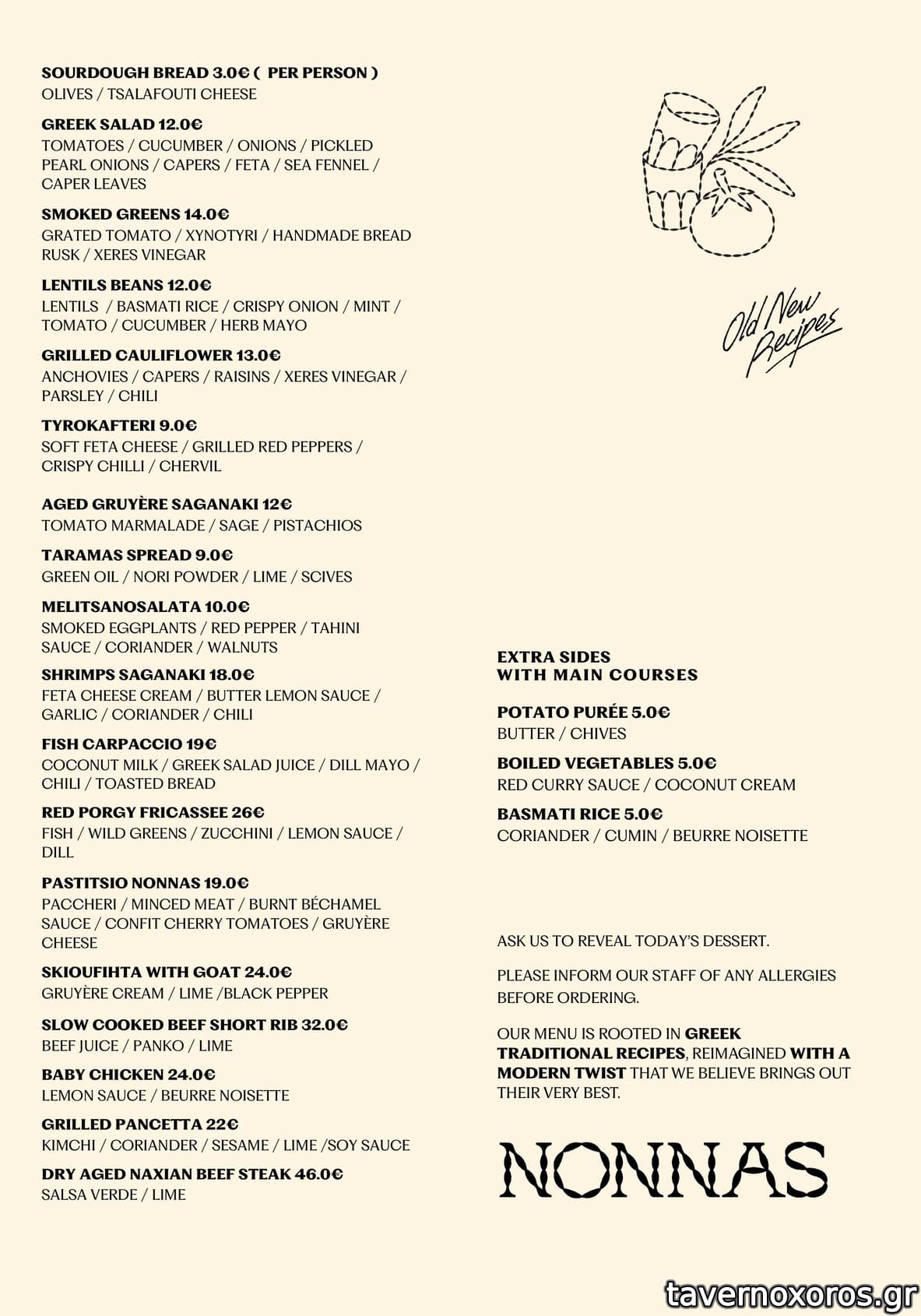 | Λέξεις κλειδιά | Νοννάς, #τουριστικό, #πρωινό, #καγιανάς, #στραπατσάδα, #αυγά, #ομελέτα, #σάντουιτς, #κρουασάν, #κοτόπουλο, #γαρίδες, #σκιουφιχτά, #πανσέτα, #μοσχαρίσια μπριζόλα |