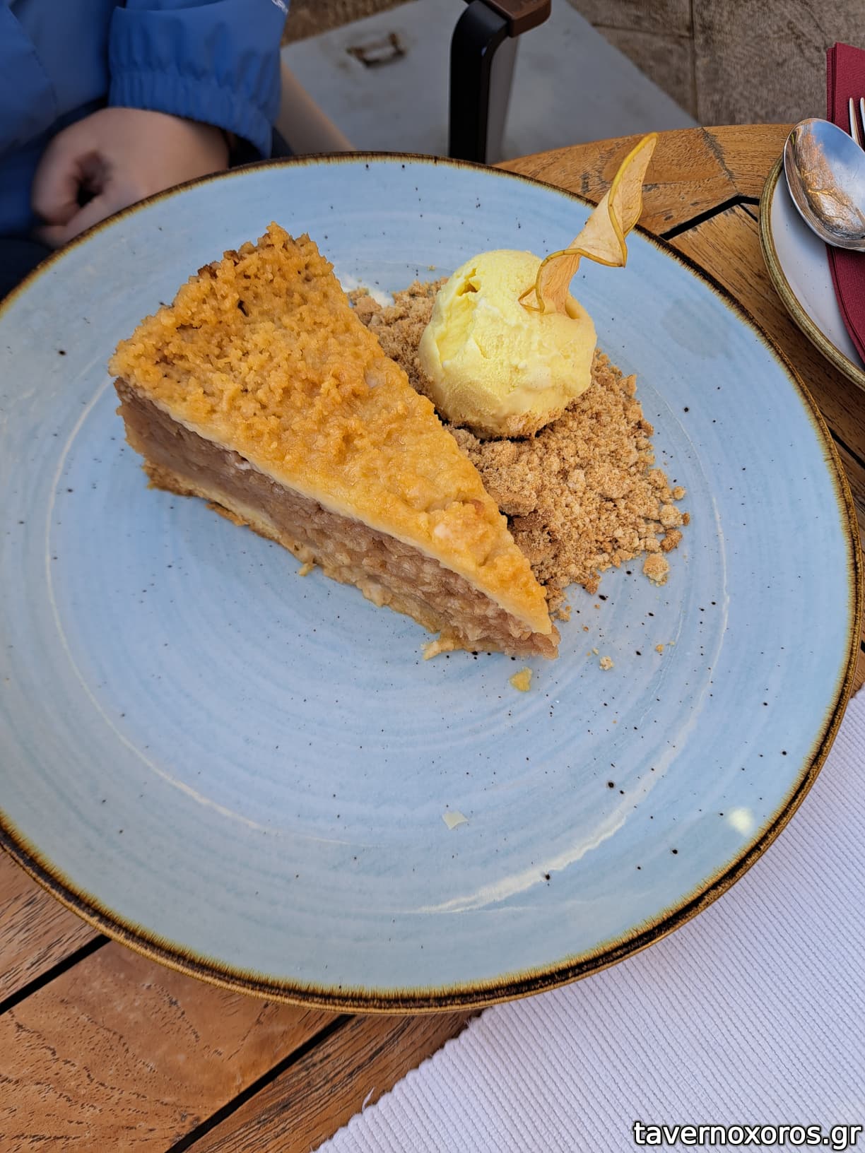 Φάγαμε ροζάτα (τοπικό γλυκό, σαν κρέμα καραμελέ με λίγο ροδονερο) και μια μηλόπιτα.