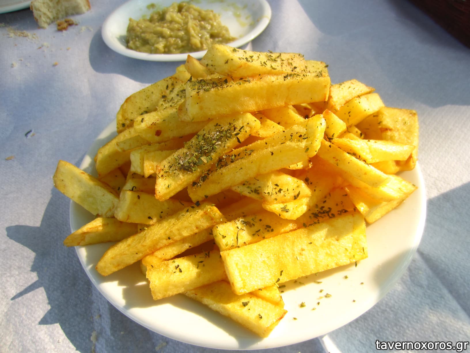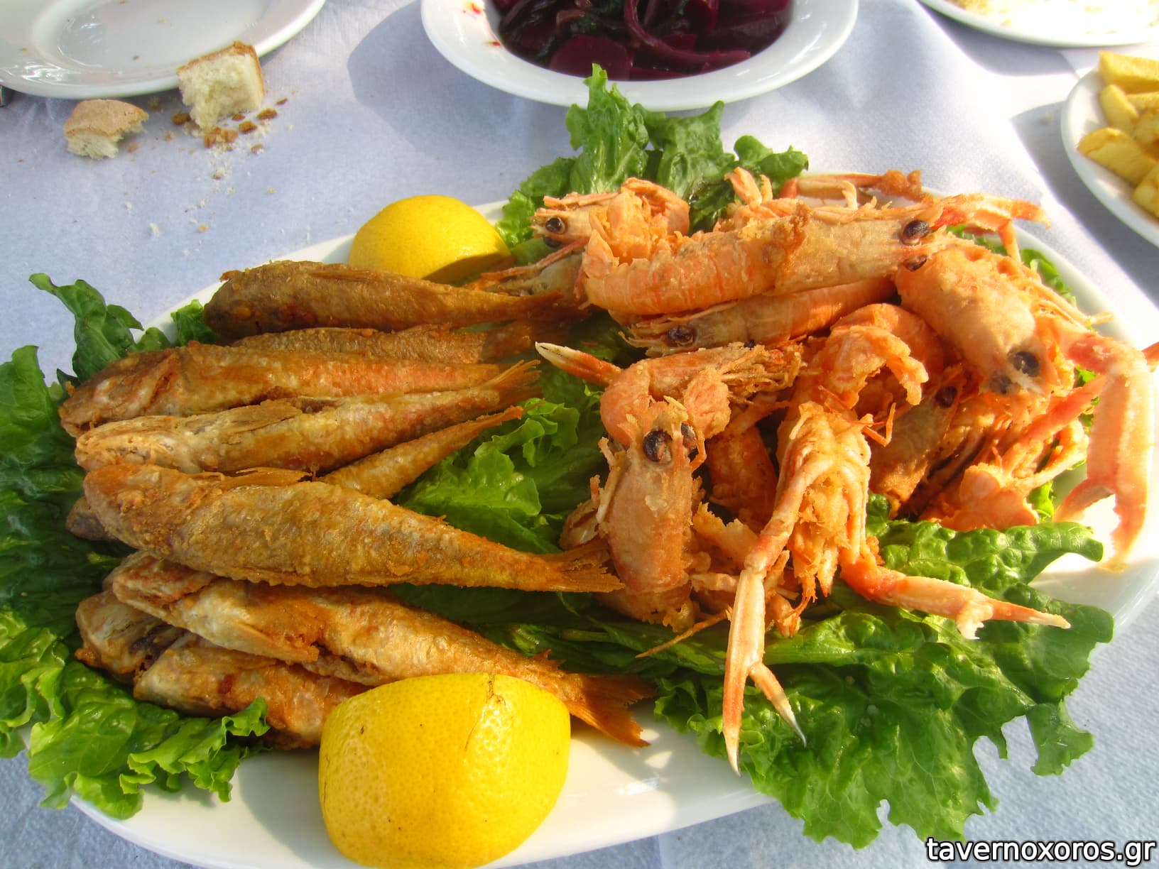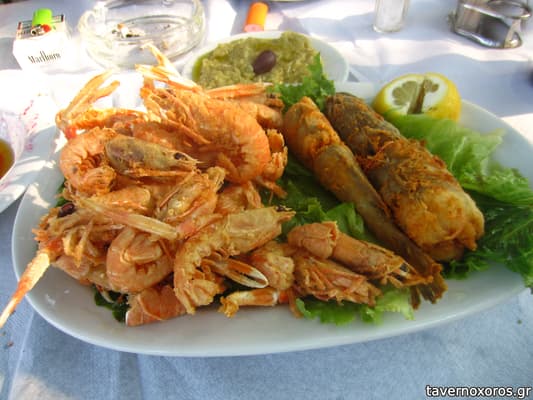 Καραβίδες τηγανητές και μπακαλιάρος (το πρώτο καλό, το δεύτερο μέτριο)