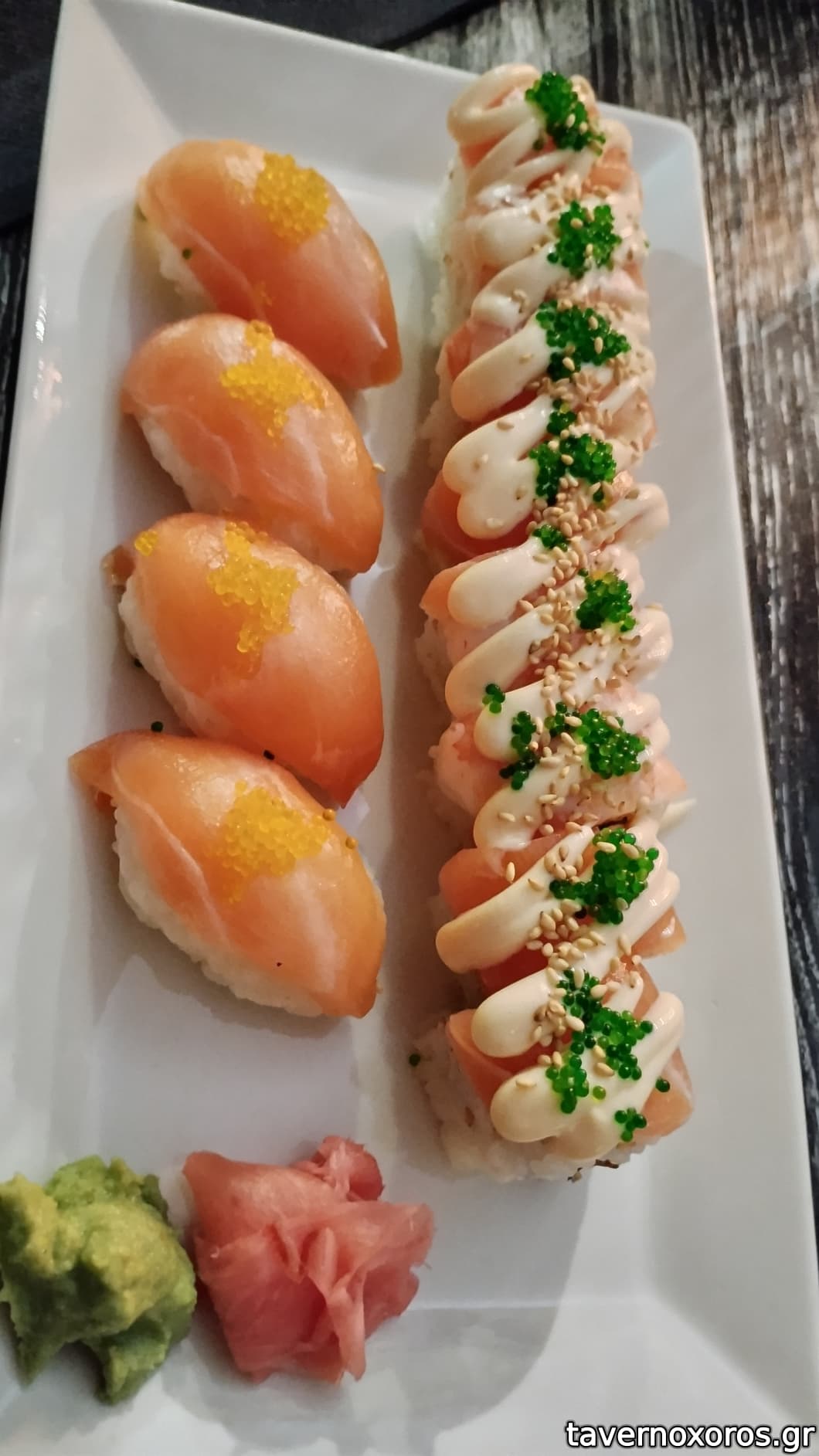 Αριστερά Salmon nigiri & δεξιά Long Island (το νιγκίρι μια χαρά. Το long island πολύ φορτωμένο)