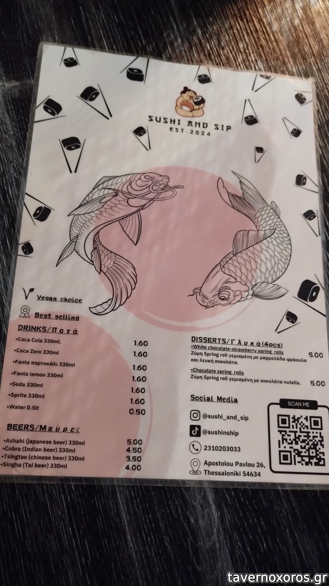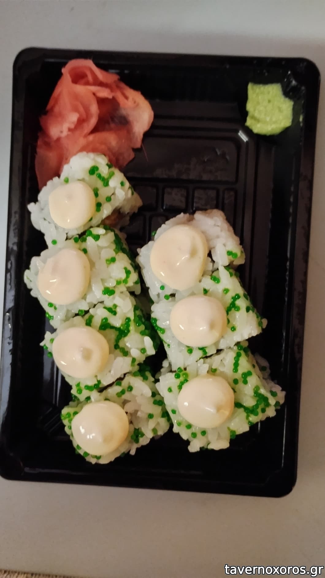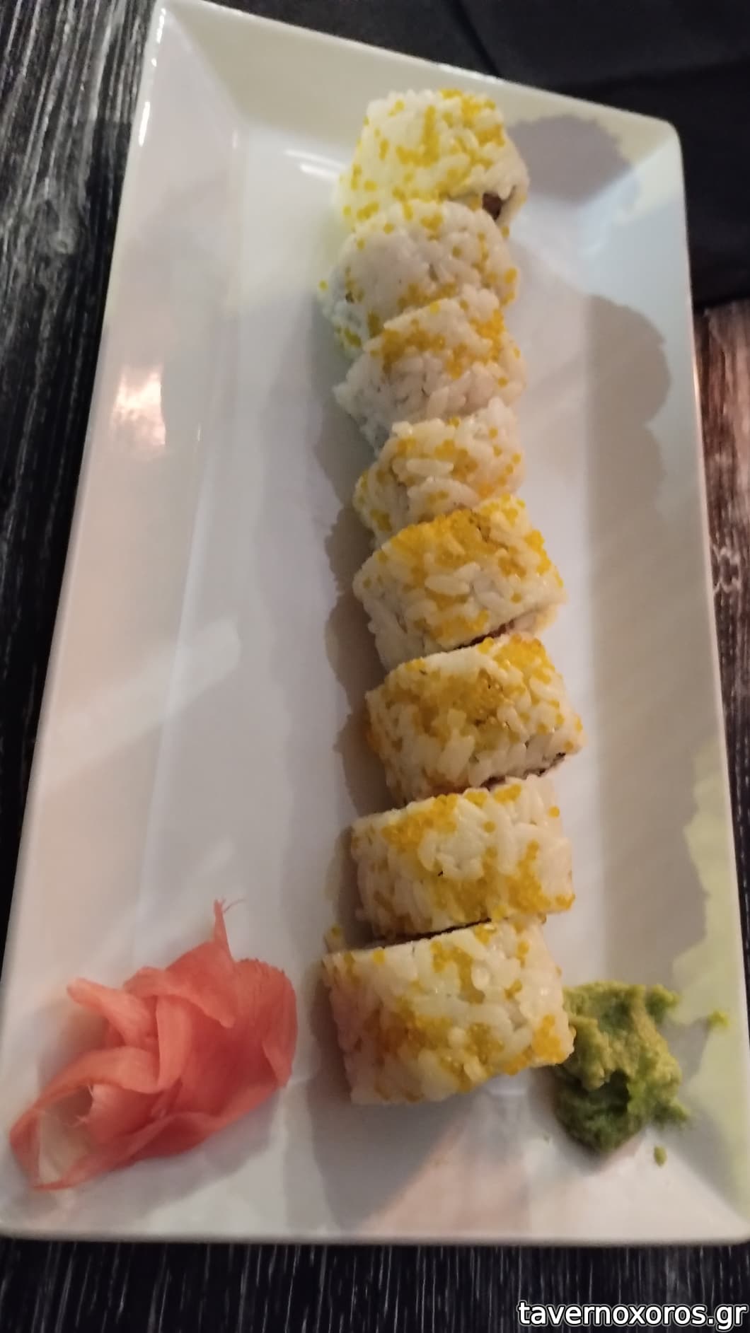 Από sushi δουλεύει μόνον γαρίδα, σολομό, σουρίμι καβούρι και χέλι. Δεν έχει τόνο. Γενικά όλα είναι απλοϊκά, αλλά πολύ φθηνές τιμές. Τα παραφορτωμένα δε μάς πολυάρεσαν, αλλά τα απλά ήταν καλά. Οι γαρίδες popcorn δεν ήταν καλές (άνοστες και μοιάζαν με τηγανητά καλαμαράκια στη γεύση)