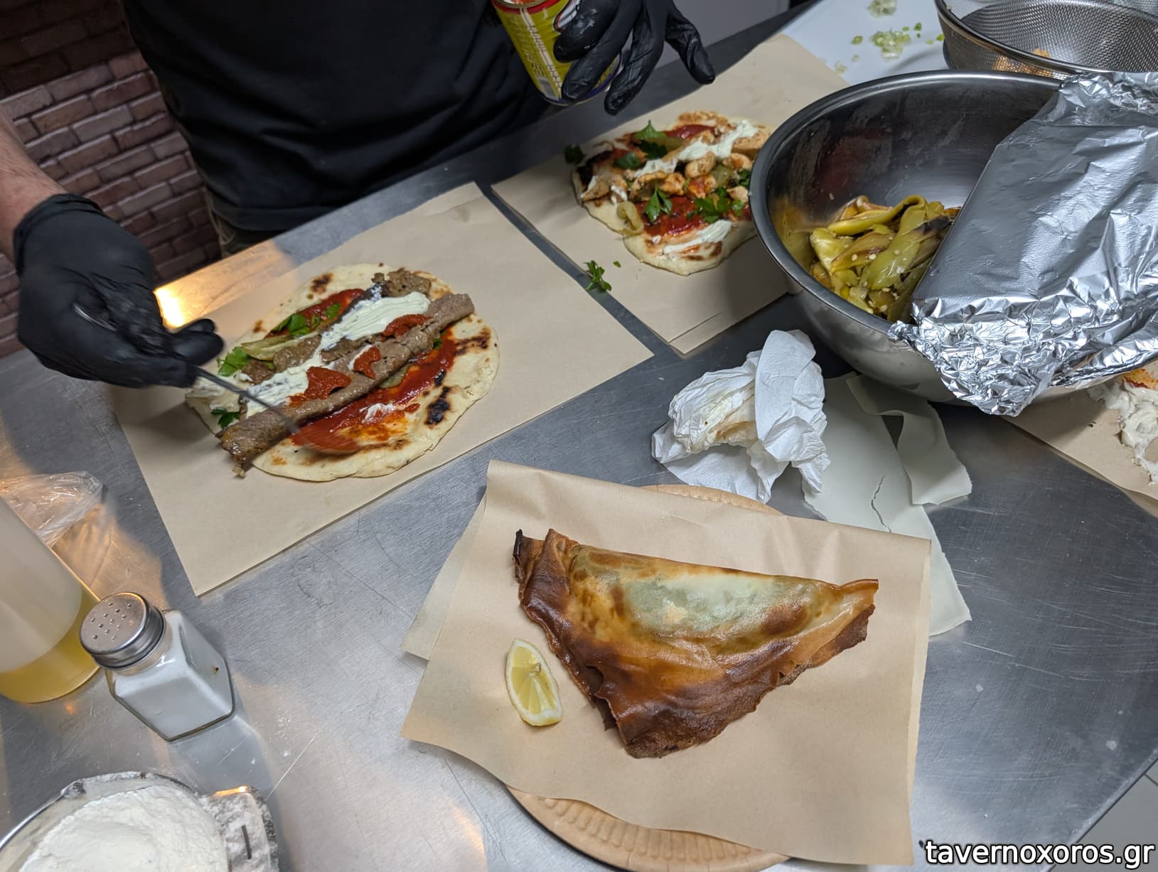 Μου άρεσε πολύ η πίτα του, δεν είναι ετοιματζιδικη, καθώς και η καυτερή σάλτσα του.