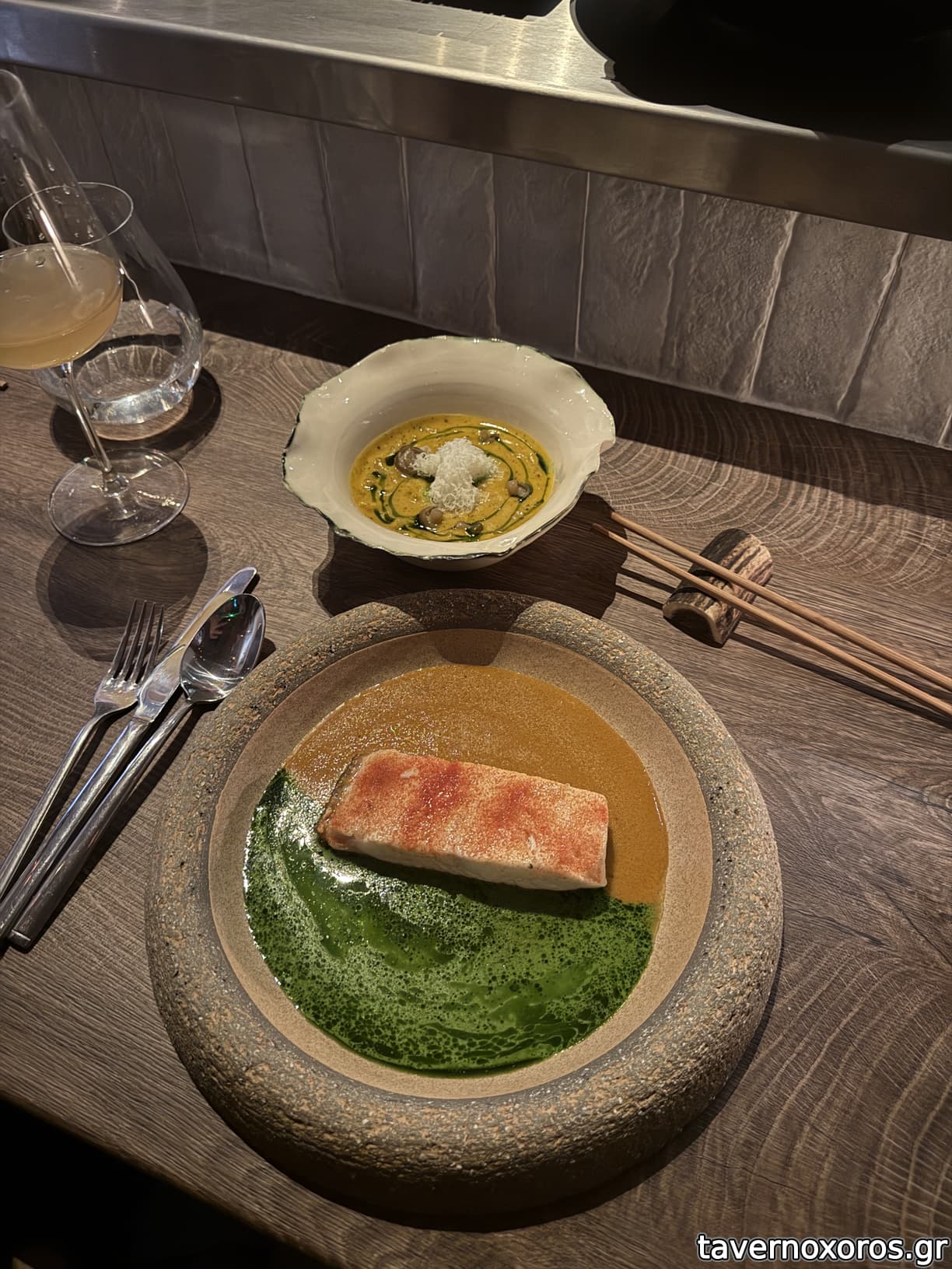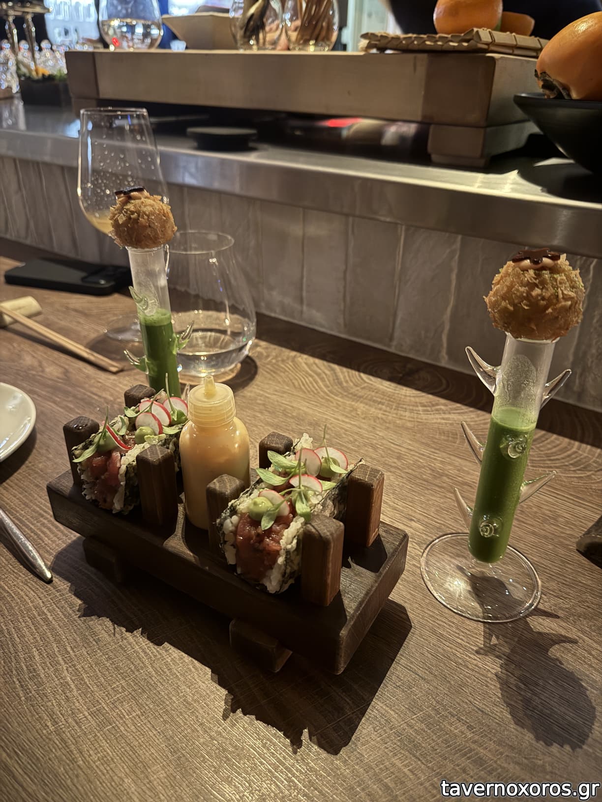 Φαγητό είναι στο στυλ του Αλεξ, fine dining με Ιαπωνεζικες πινελιές. Πολλά ωμά, πολλά σούσι κτλ.
