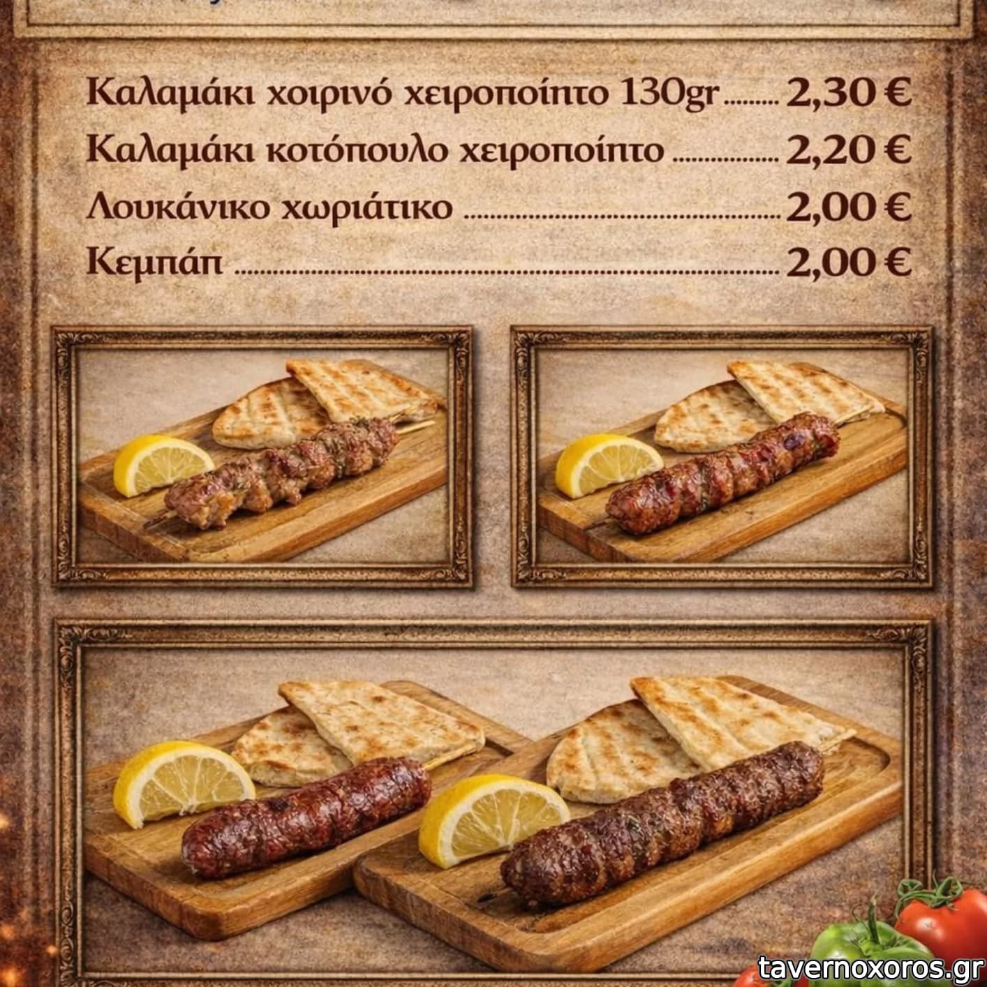 | Λέξεις κλειδιά | #σούβλες, #κεμπάπ, #φρυγαδέλι, #εξοχικό χοιρινό, #κοκορέτσι, #σάντουιτς, #burgers, #μπιφτέκι, #πρόβειο παϊδάκι, #λουκάνικο, #σουβλάκια, #σουτζουκάκια, #κοτόπουλο, #συκώτι, #μπιφτέκι γεμιστό, #χοιρινή, #πανσέτα, #σκεπαστή, #μπιφτέκι προβατίνας, #πανσετομπριζόλα, #τσαλαφούτι, #μοσχαρίσια μπριζόλα, #παϊδάκια |