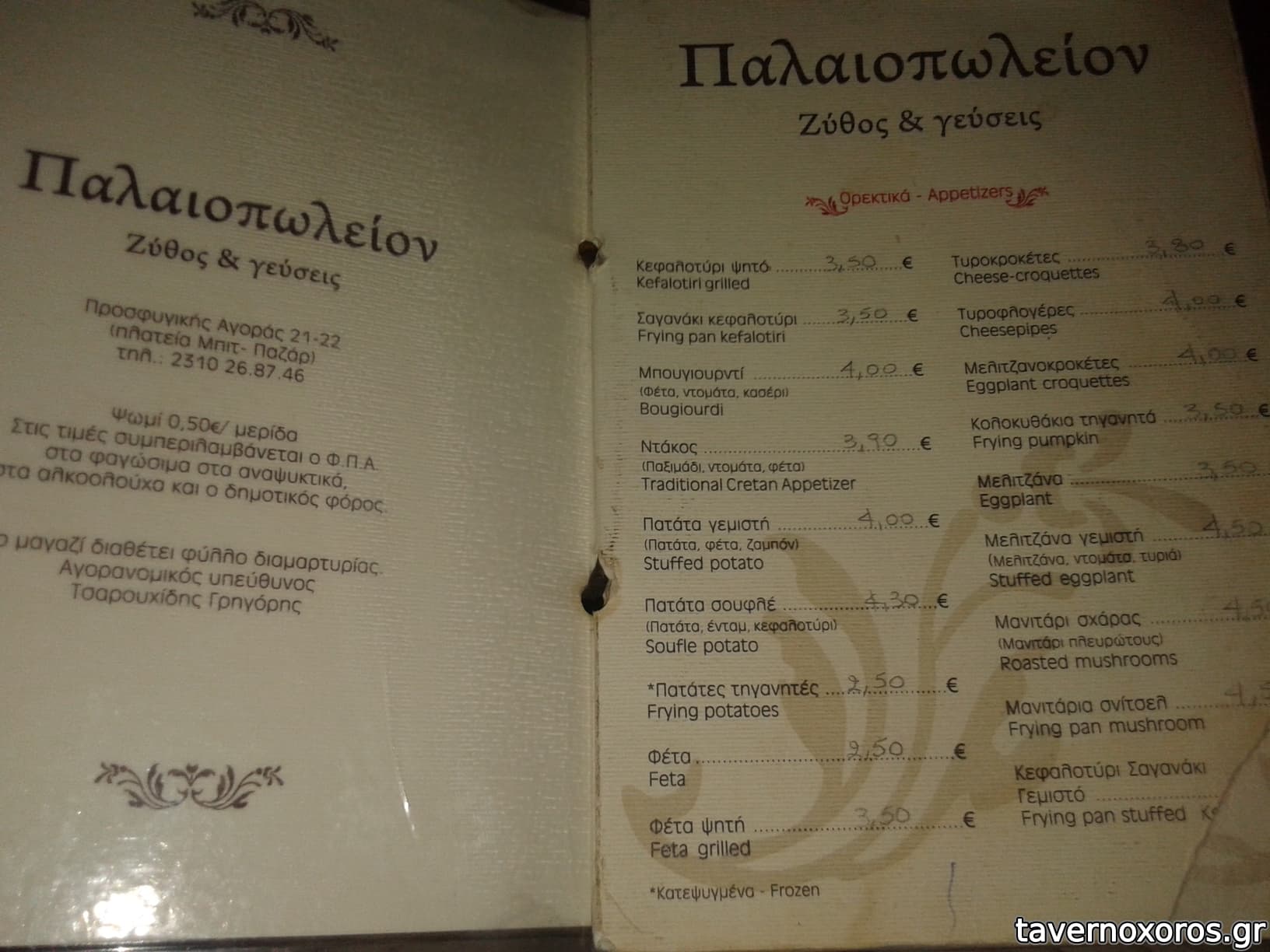 3 βαρελίσιες άλφα, 2 μαλαματίνες, 2 σόδες, 2 κόλες συν τα φαγητά 41,
