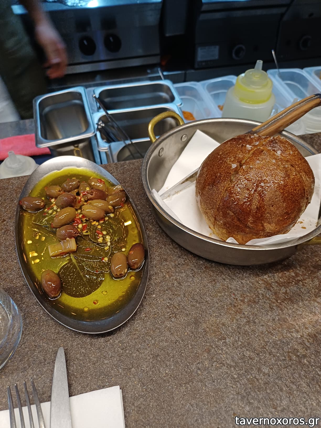 Ψωμί ζυμωτό, βλαστάρια κάπαρης, ελιές, ελαιόλαδο
