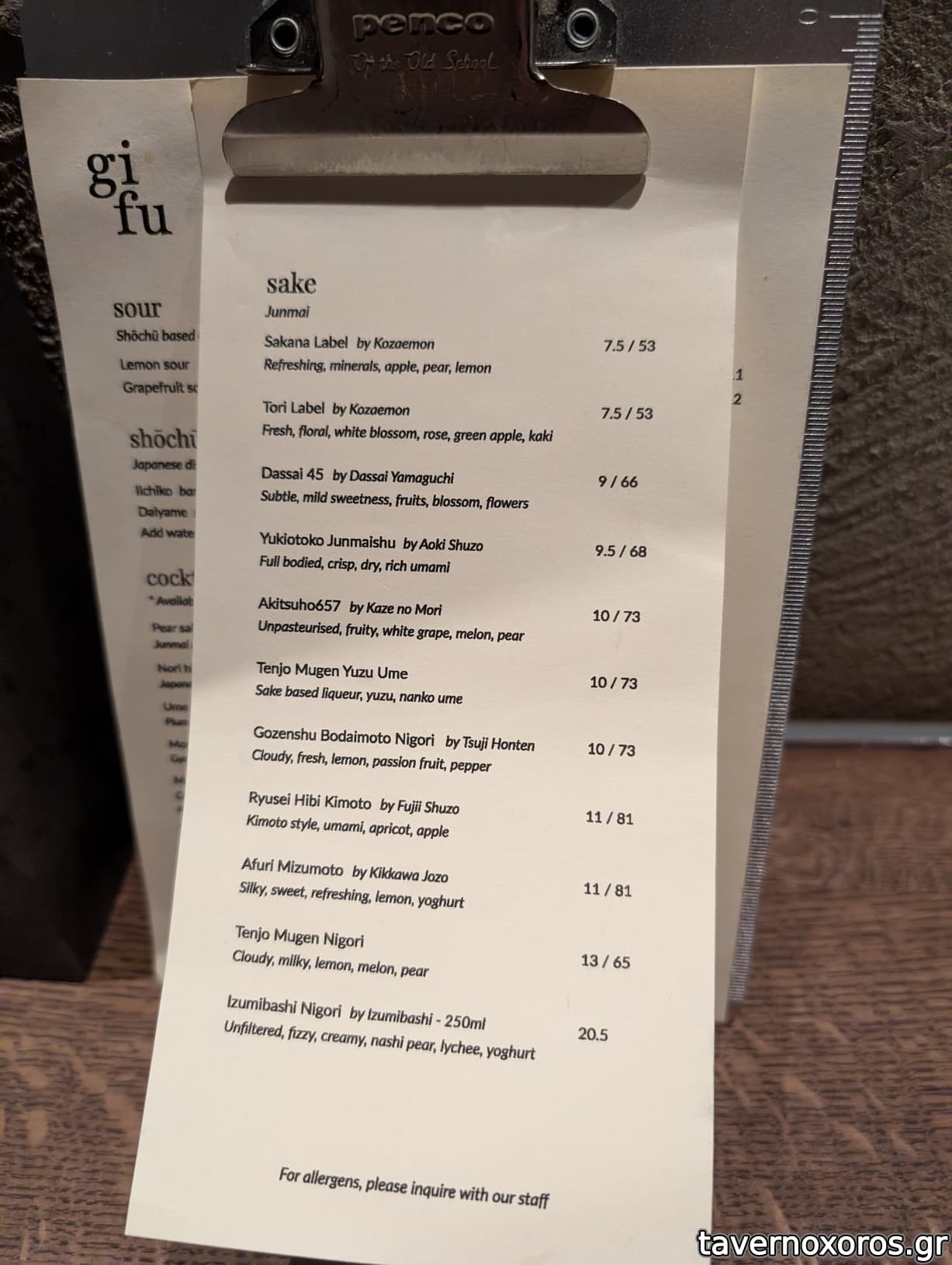 Kozaemon Junmai Sakana (καλό, ελαφρύ, κάπως φλοράλ)