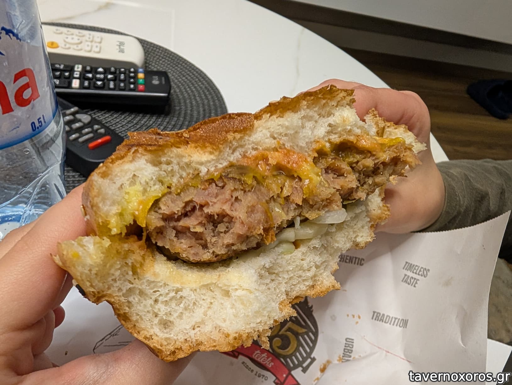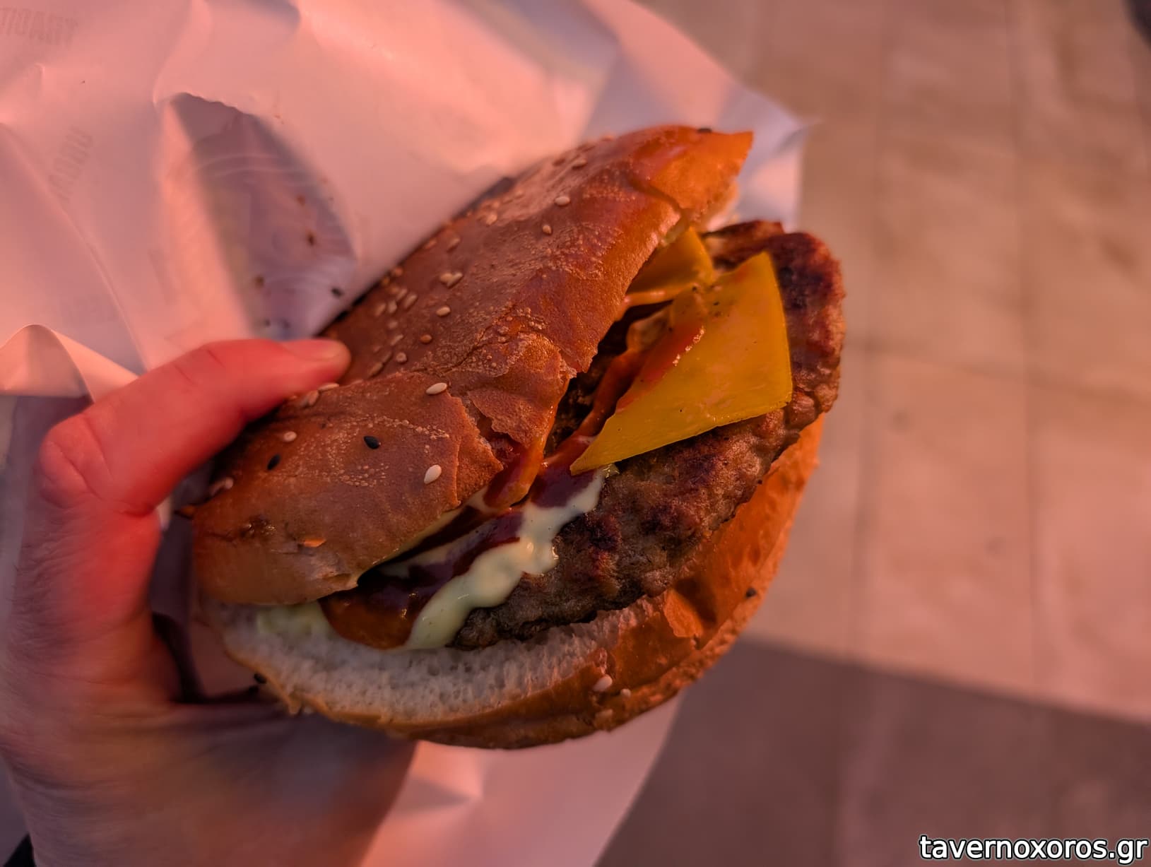 Cheeseburger" (τυπικό τρας μπέργκερ Σκοπίων)