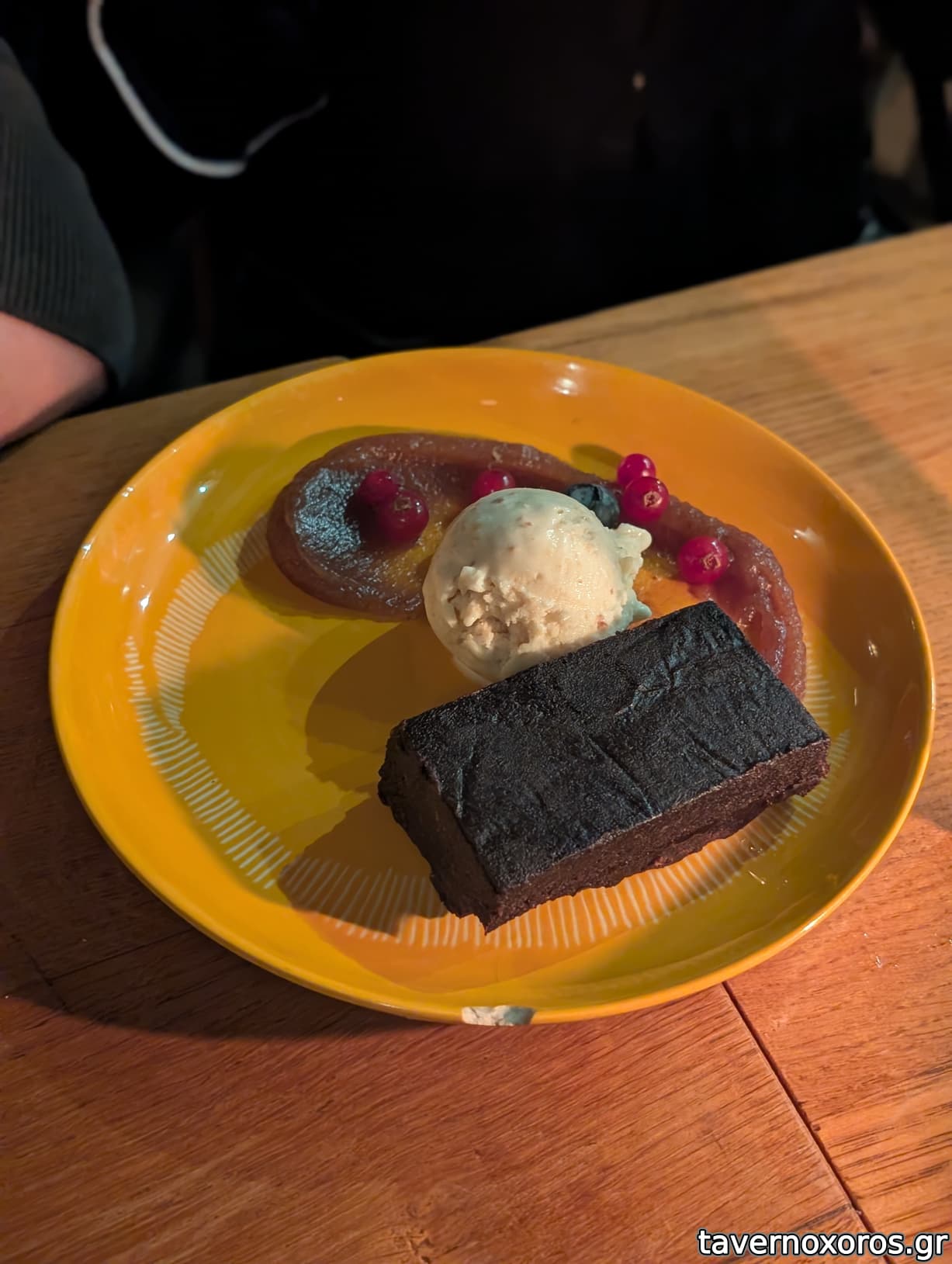 Πιάτο 5: brownie, παγωτό και κάτι που θύμιζε πετιμέζι (απογοητευτικό)
