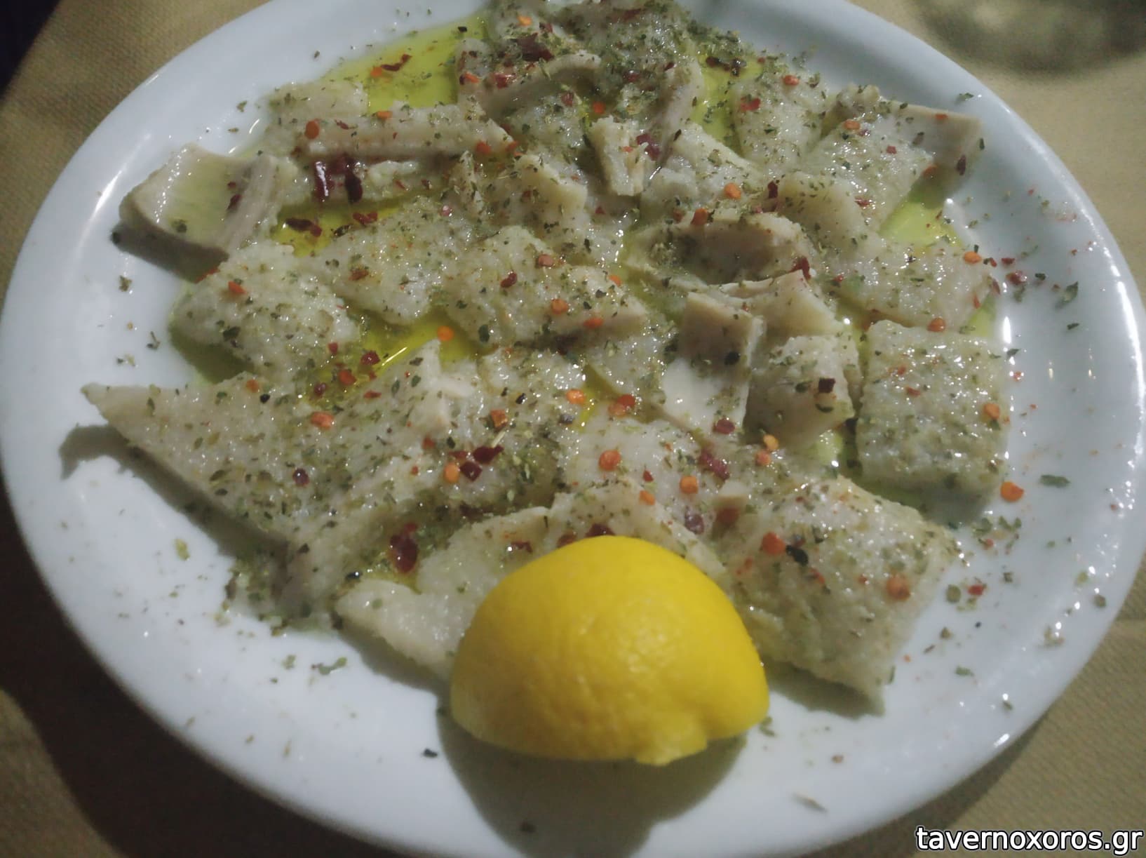 Χοντροκομμένη στεγνή κοιλιά, λάδι, λεμόνι