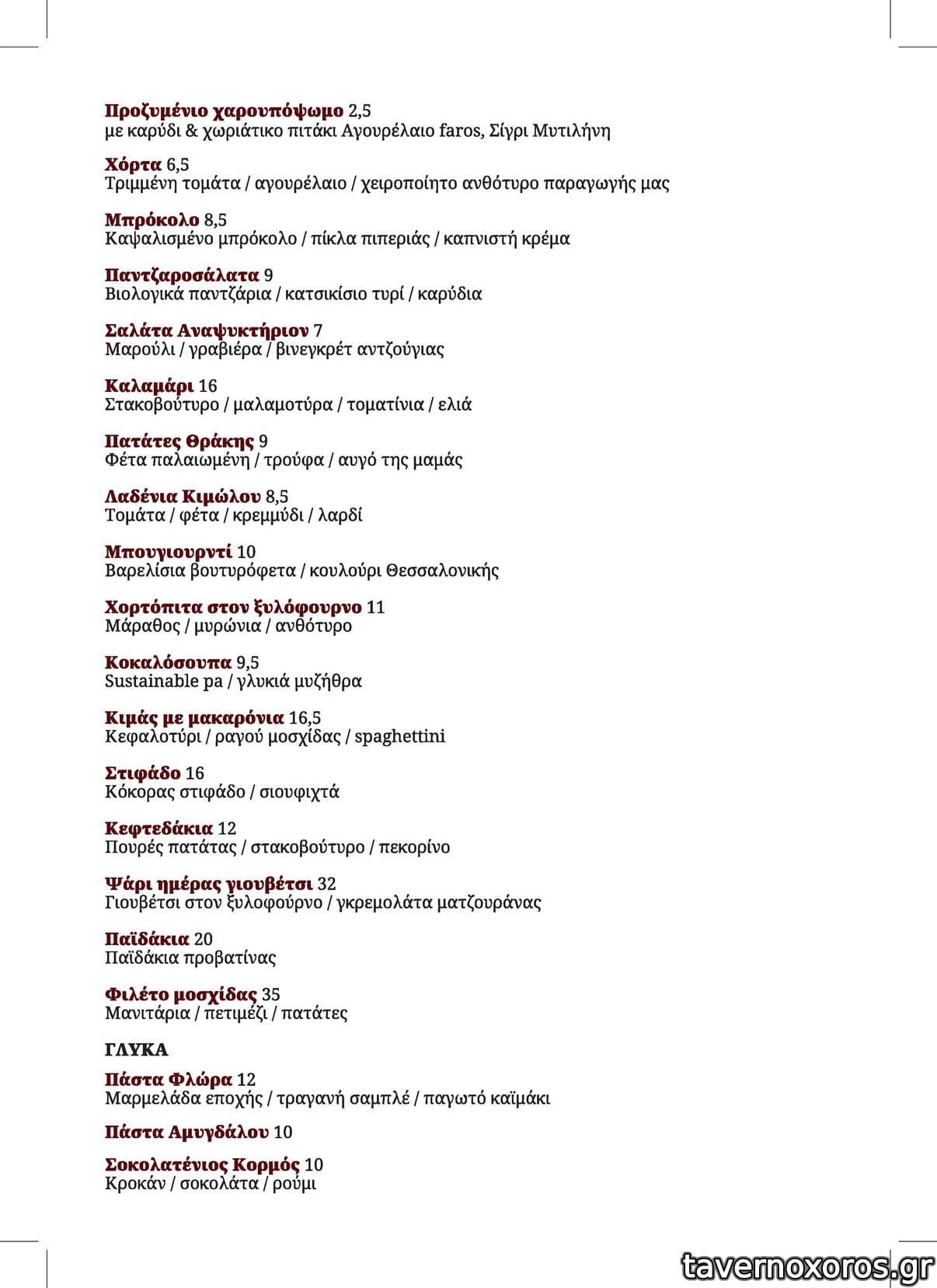 | Λέξεις κλειδιά | Αναψυκτήριο, #ξυλόφουρνος, #προζυμένιο ψωμί, #λαδένια, #στιφάδο, #κόκορας, #γιουβέτσι, #κεφτεδάκια, #μανιτάρια, #παϊδάκια, #steaks |