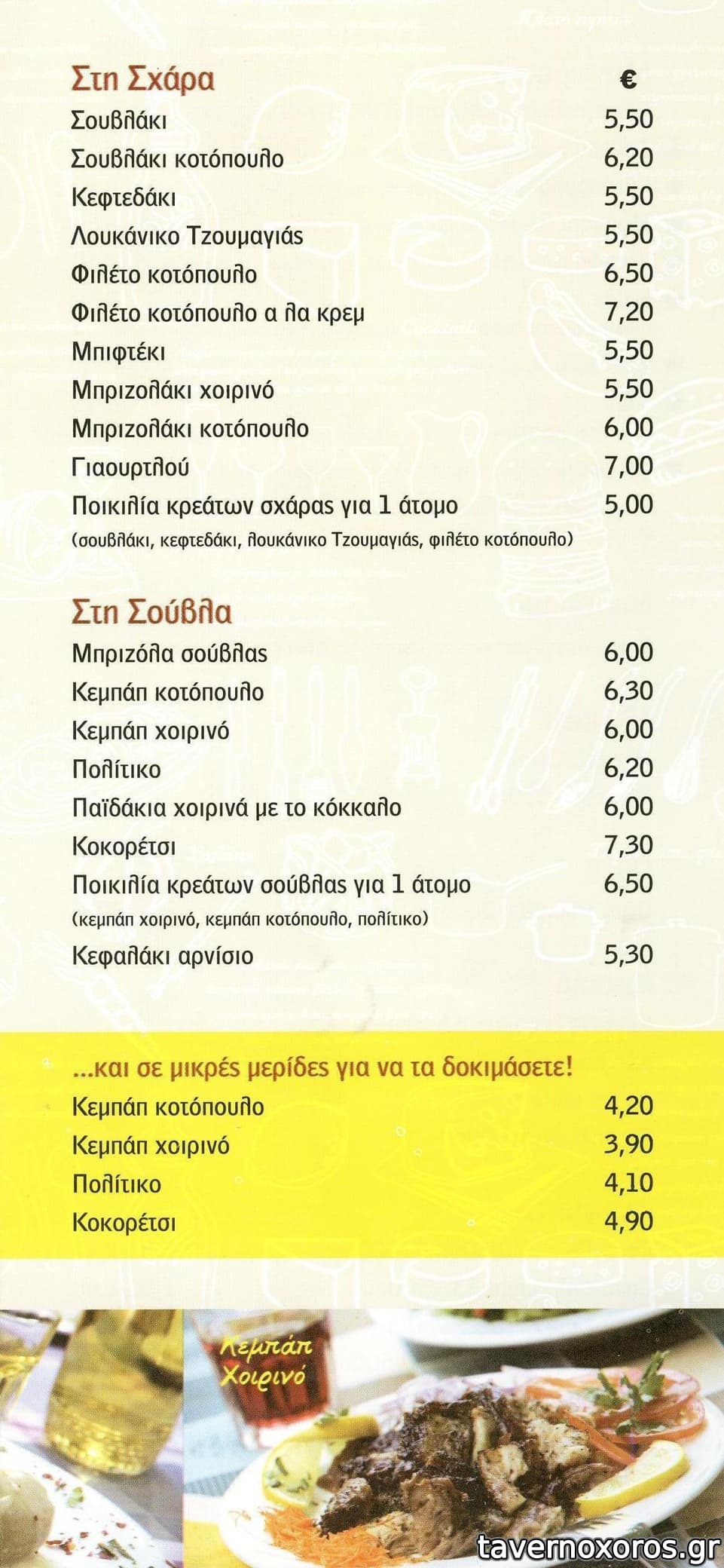 Έγινε ανακαίνηση και βελτιώθηκε ο χώρος αισθητά, και έξω απ'το κατάστημα τραπεζάκια. Μέσα ξύλινη εν γένει επένδυση και μεταφορά της σούβλας σε άλλο σημείο. Ποιότητα πολύ καλή και στις σούβλες και στα μαγειρευτά με συγκρατημένες τιμές στα δεύτερα. Βραδάκυ μαζεύει κόσμο οπότε μεσημέρι είναι καλύτερη ώρα να περιδρομιάσεις με μαγειρευτό ή άλλου στομαχικού ενδιαφέροντος. Ζεστός ο χώρος και βλέπεις έξω όπου κάτσεις, καλή μουσική-όχι αδιάφορη.