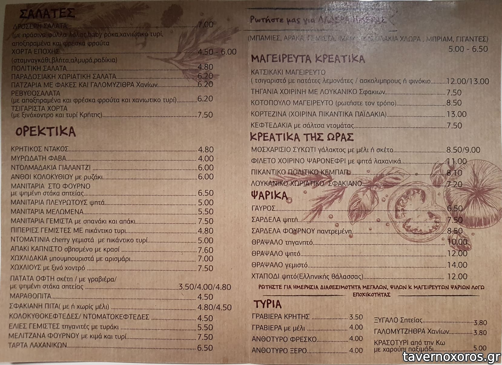 | Λέξεις κλειδιά | #κρητικό, #στοά, #ντάκος, #κολοκυθοανθοί, #ντολμαδάκια, #μανιτάρια, #πιπεριές, #απάκι, #χοχλιοί, #κολοκυθοκεφτέδες, #μαραθοτηγανίτες, #σφακιανή πίτα, #ντοματοκεφτέδες, #αθότυρος, #ξύγαλο, #πόσια, #μπάμιες, #φασόλια γίγαντες, #κατσικάκι, #τσιγαριαστό, #ασκολύμπροι, #τηγανιά, #λουκάνικο, #κοτόπουλο, #κεφτεδάκια, #συκώτι, #σουτζουκάκια, #χταπόδι, #γαύρος, #σαρδέλα, #θράψαλα |