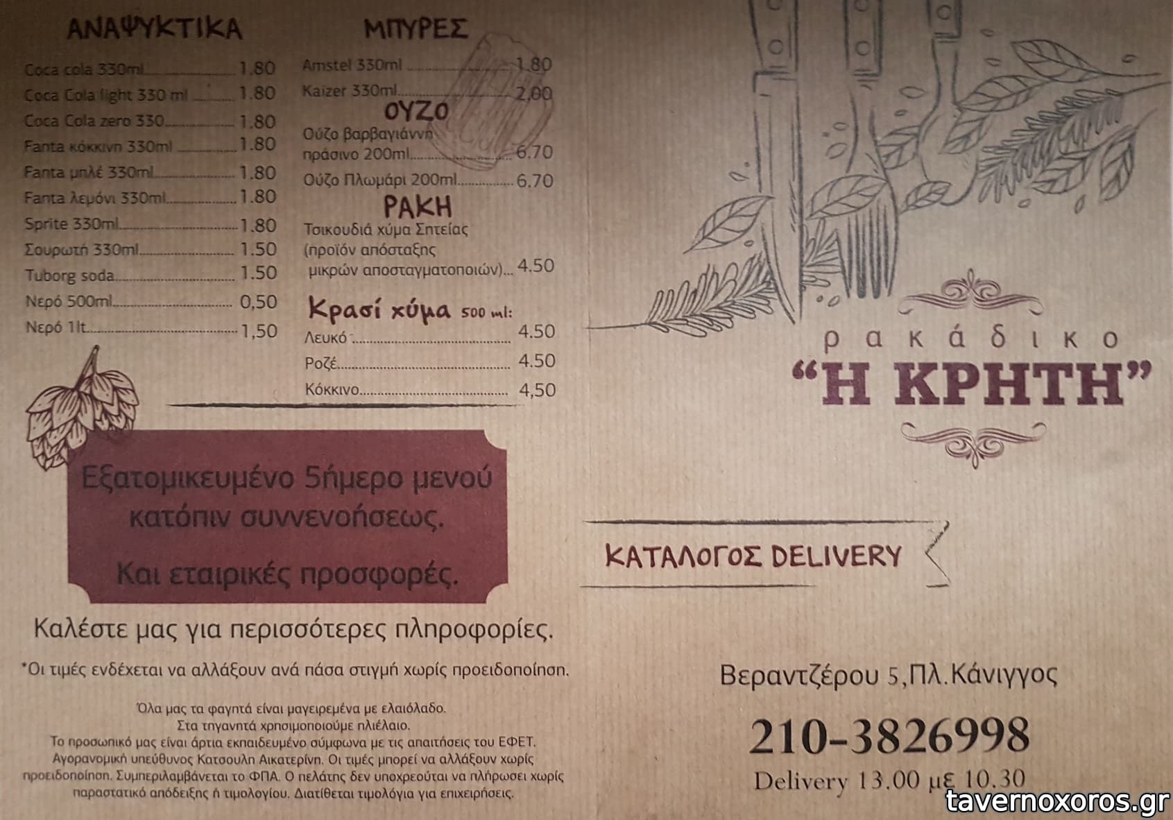 | Ώρες παραγγελίας | 13:00-22:30 |