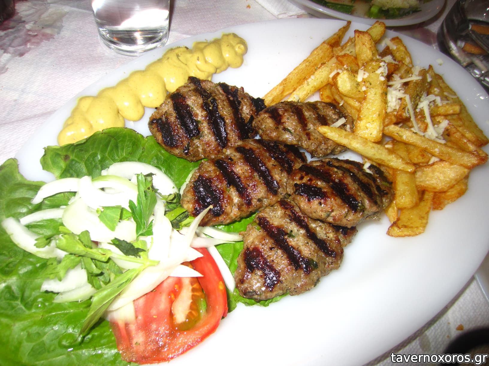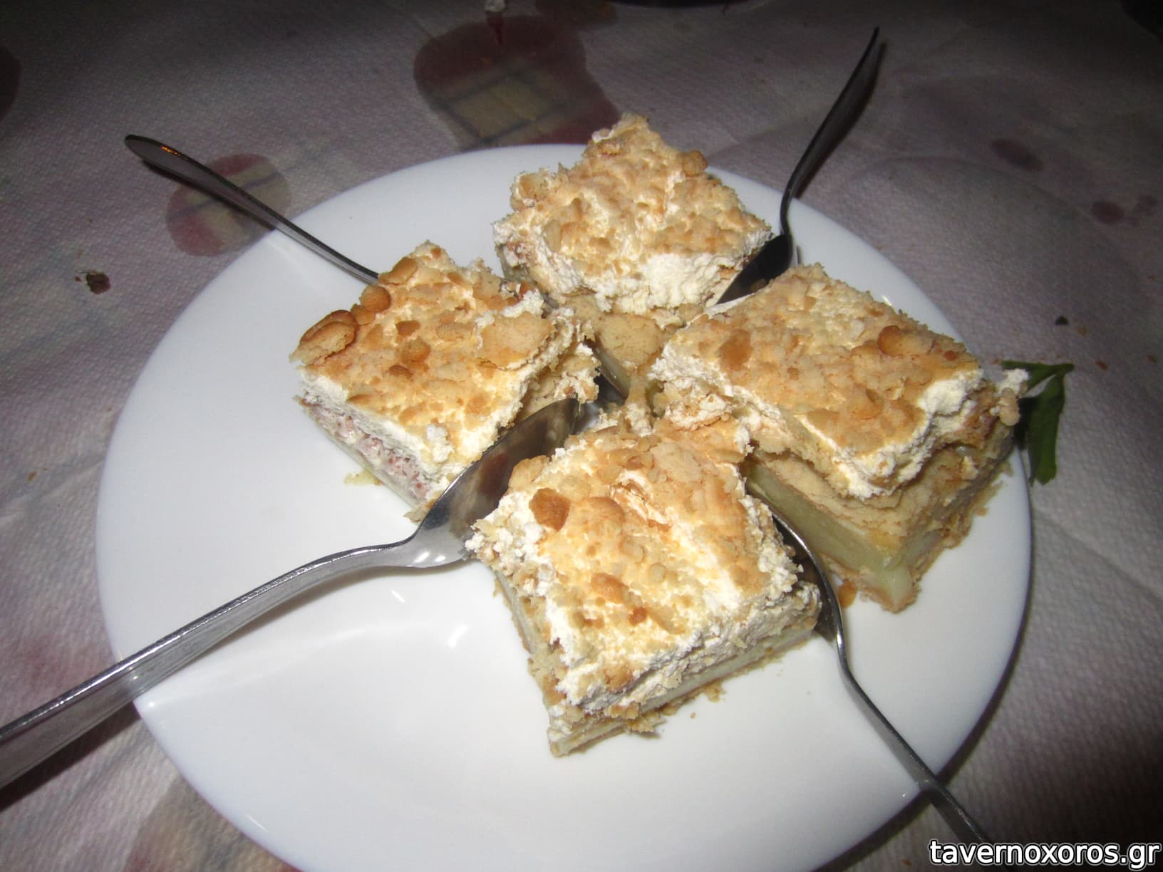 Το φαγητό, χωρίς να μας εντυπωσιάσει, μας άφησε θετικές εντυπώσεις. Πικάντικη καλή, ντολμαδάκια με τζατζίκι επίσης αμφότερα καλά, τηγανιά χοιρινή καλή, ένα ψητό τυρί (που δε θυμάμαι πιο από όλα ήταν) μέτριο, τηγανιτές πατάτες πολύ καλές, μια καυτερή πιπεριά και 1 κιλό λευκό κρασί αρκετά καλό. Λογαριασμός 33 €. Ακολούθησε κέρασμα θεϊκή καρυδόπιτα αέρινη και αφράτη τόσο σιροπιασμένη όσο να μη σε λιγώνει.