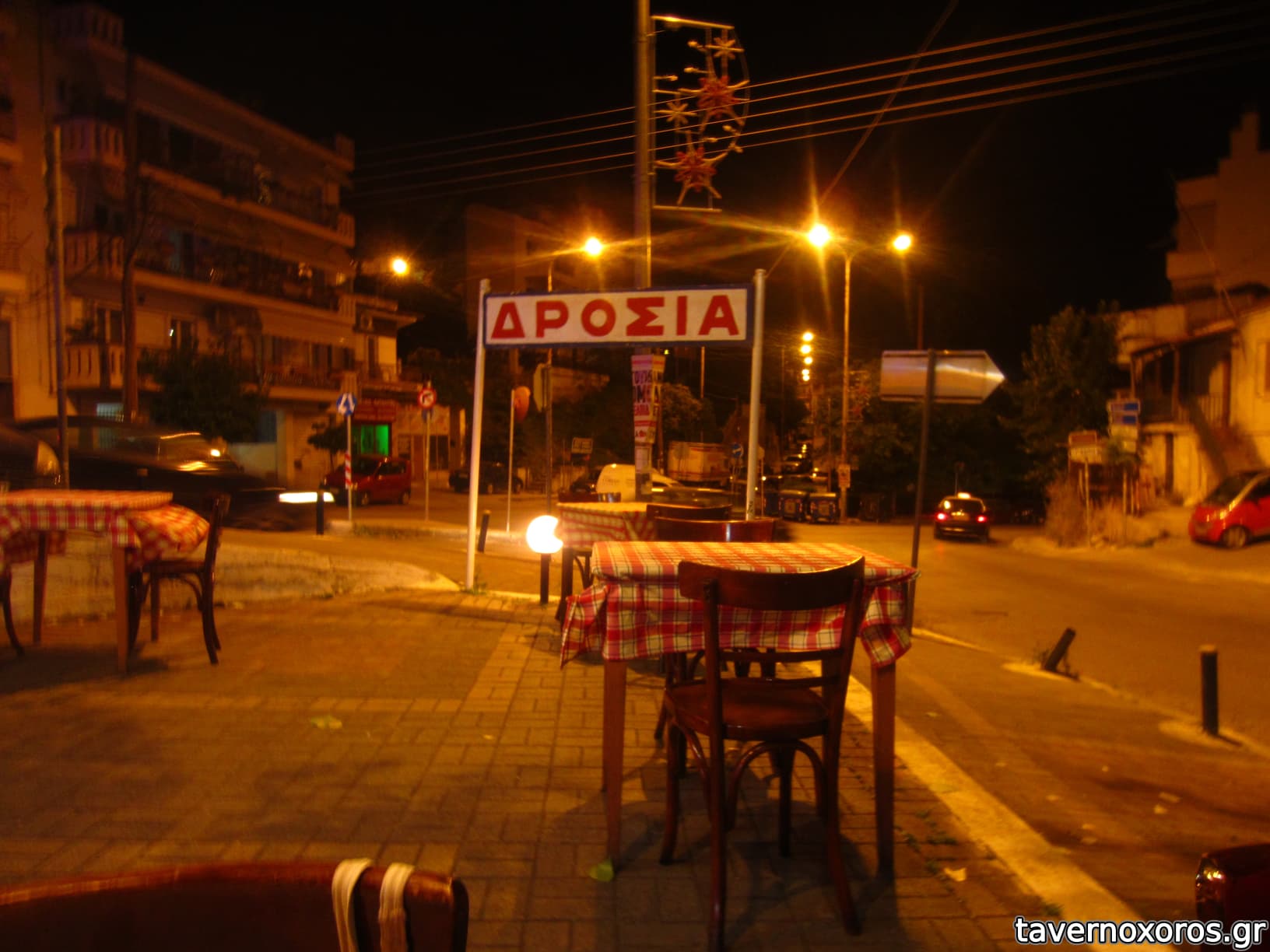 Εξωτερικά, αφήσανε την επιγραφή της παλιότερης ταβέρνας "Δροσιά" (Ιούνιος 2012)
