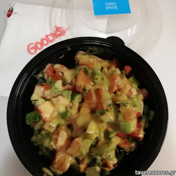 Σαλάτα Κρήτης (παξιμάδια, τομάτα, πιπεριά, άνηθος, φρέσκο κρεμμυδάκι και vinaigrette ελαιόλαδου, ok)