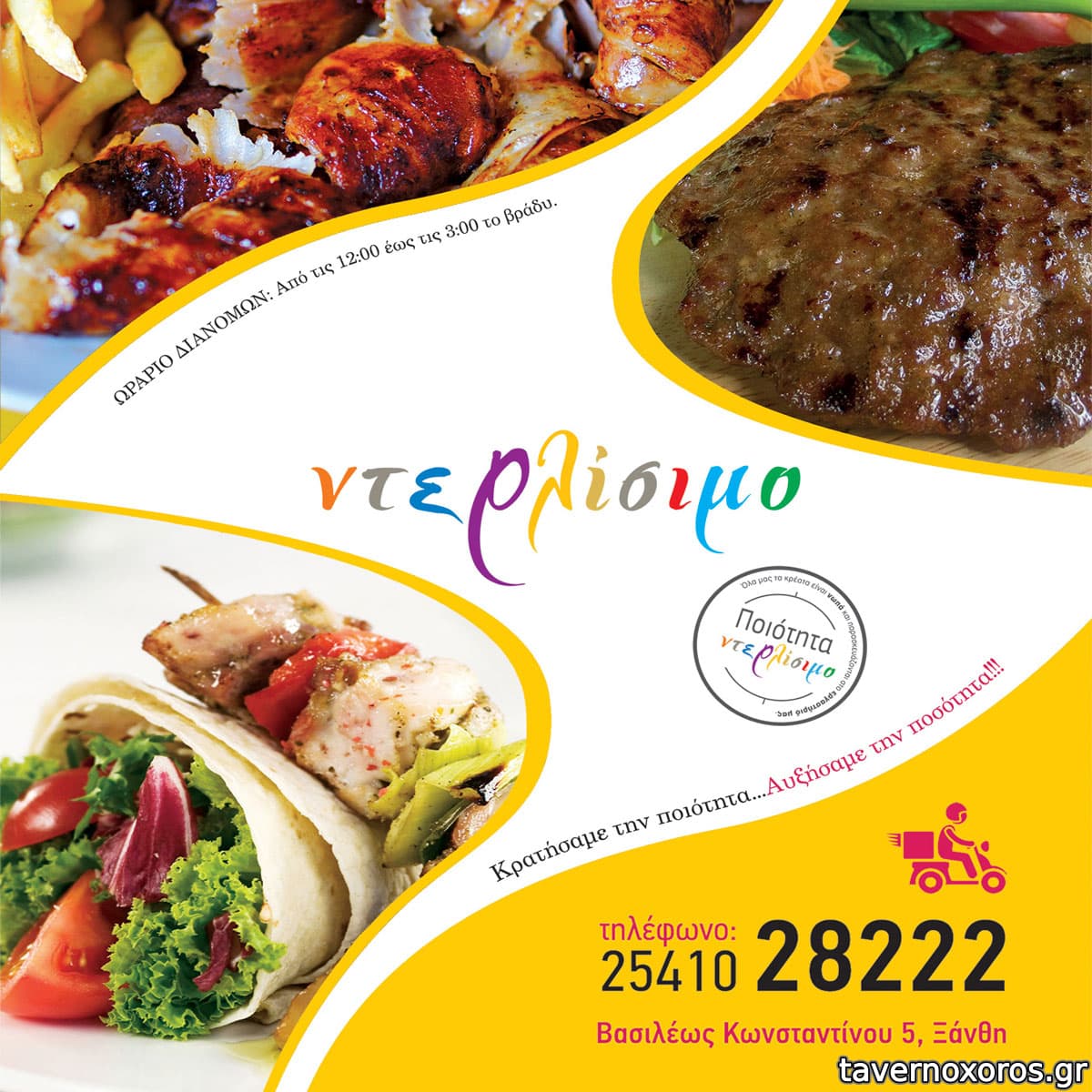 | Ωράριο | 13:00-00:00 |