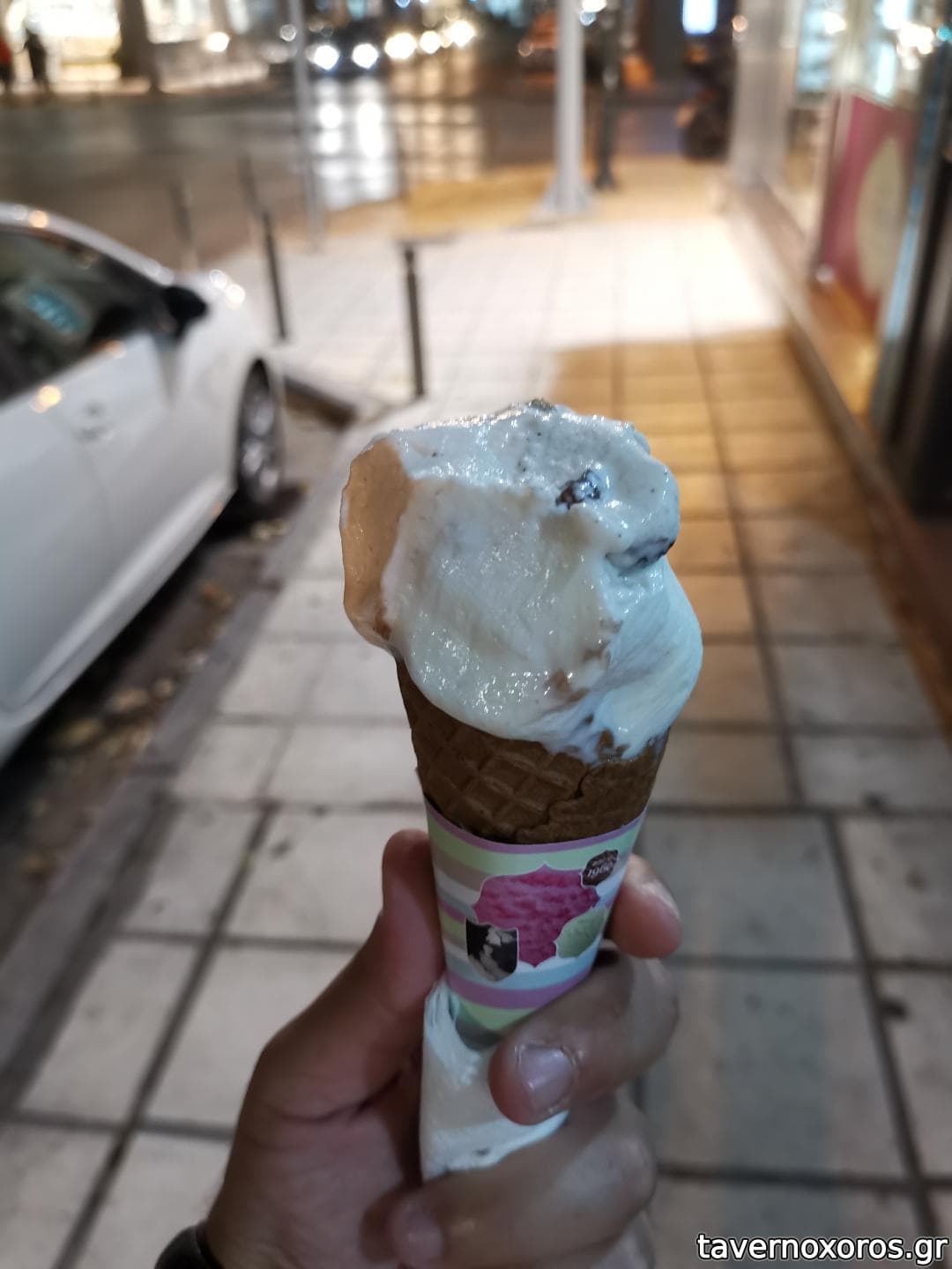 3 τεραστιες μπαλες και σιροπι σοκολατα, στα 5€.
