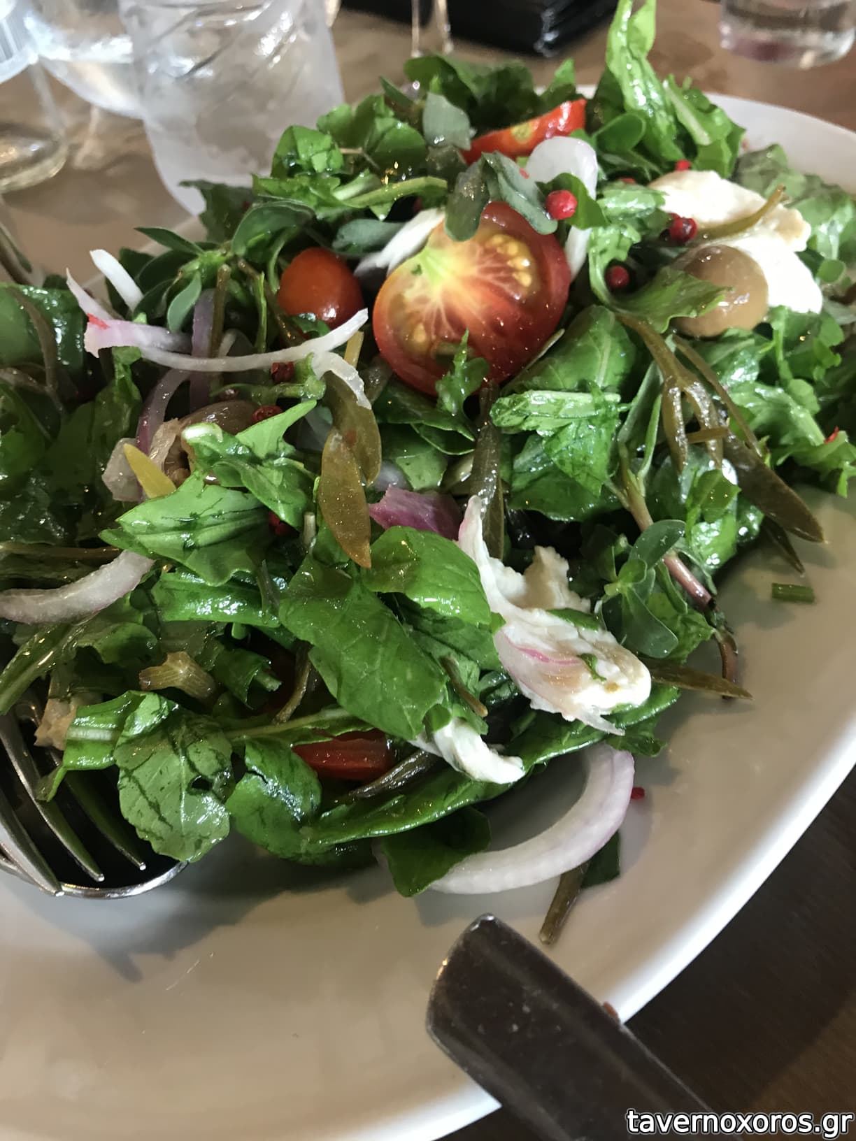 - γαυροσαλάτα (βασικά ήθελα να πάρω γαύρο μαρινάτο, μου είπε ότι τον έχουν σαν σαλάτα, φαντάστηκα κάτι μικρό σαν ορεκτικό, ήρθε μία τεράστια πράσινη σαλάτα! ωραίο όμως πιάτο, συχνά οι πράσινες είναι λίγο παρόμοιες και βαρετές σαλάτες, εδώ όλα τα υλικά είχαν το νόημά τους)