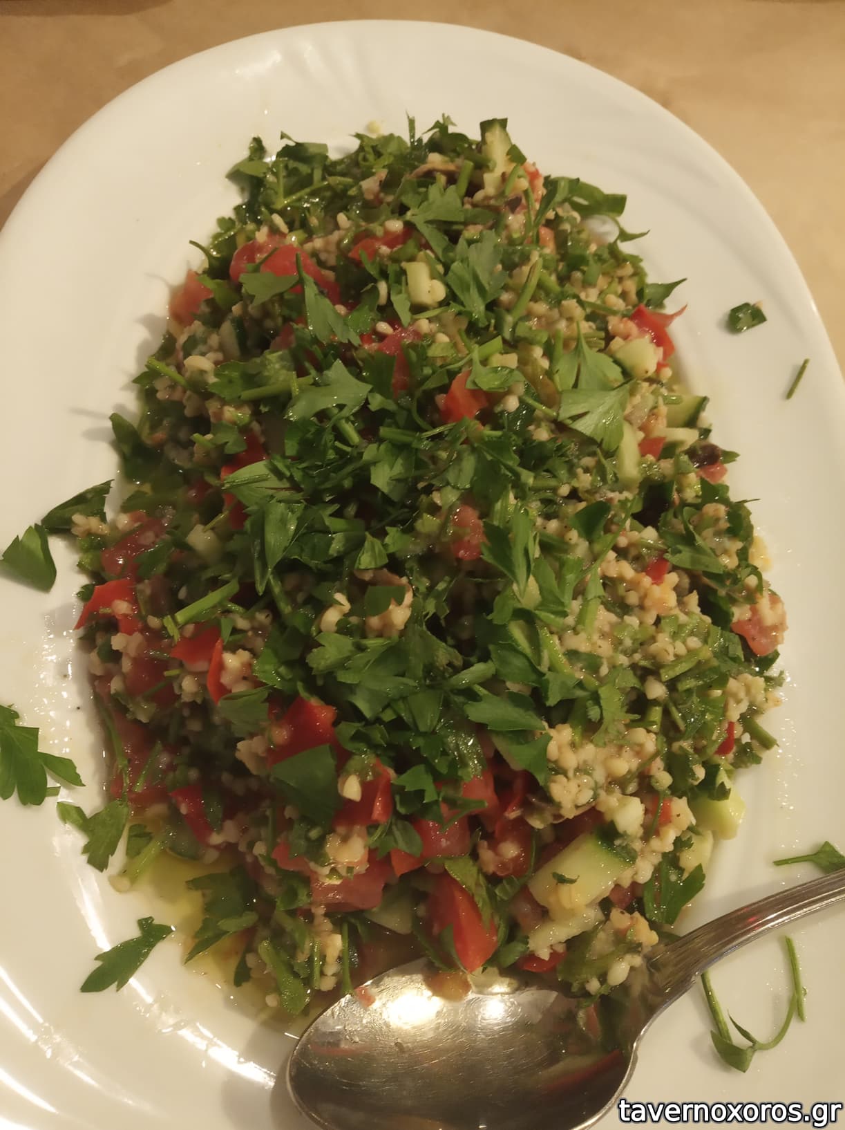 Πήραμε σκουμπρι και χέλι καπνιστό, θράψαλα ψητά, χταπόδι, ταμπουλέ (θα ήθελα περισσότερο πληγούρι και να είναι πιο ψιλοκομμένα τα λαχανικά,