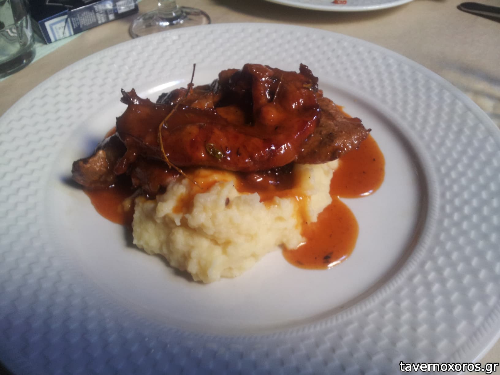 Μπριζολάκια με σάλτσα πορτοκάλι-μέλι και πουρέ