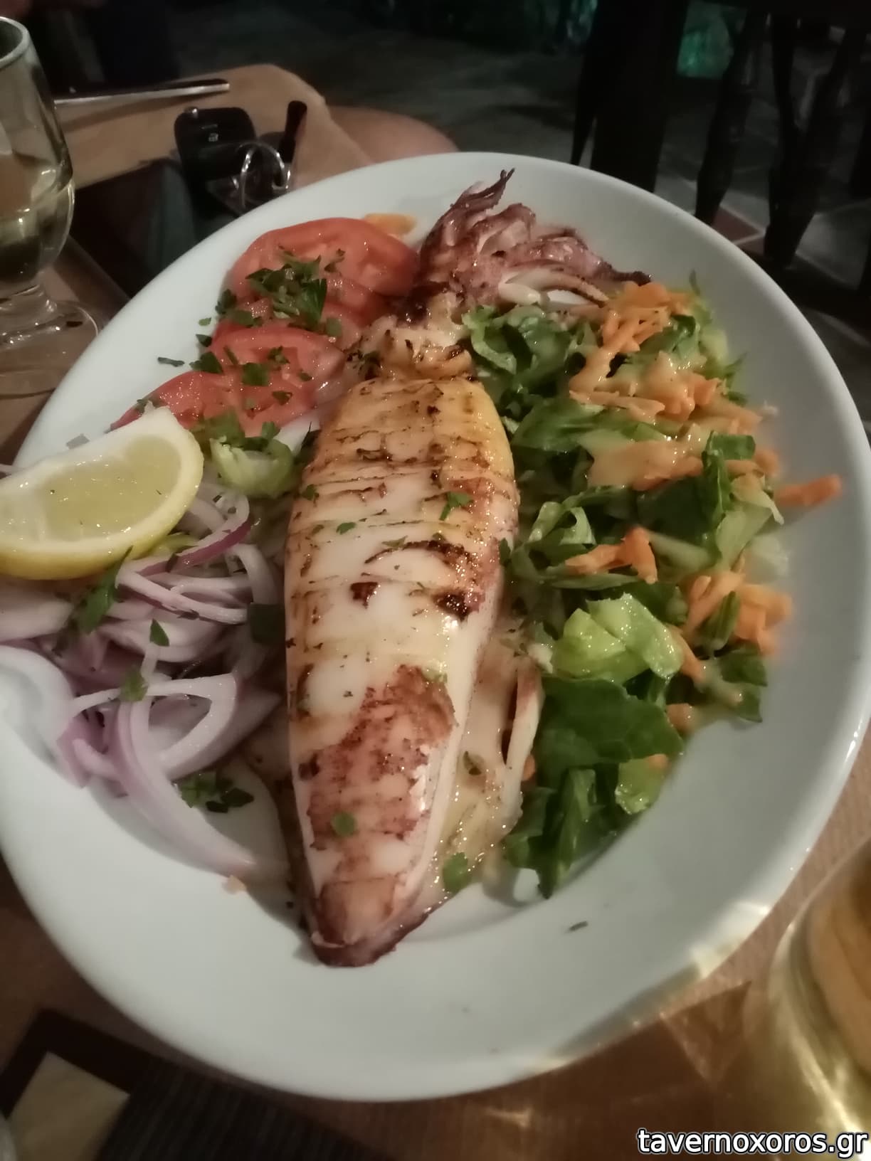Καλαμάρι ψητό ήταν πολύ καλά ψημένο, ζουμερο και τραγανό μαζί.