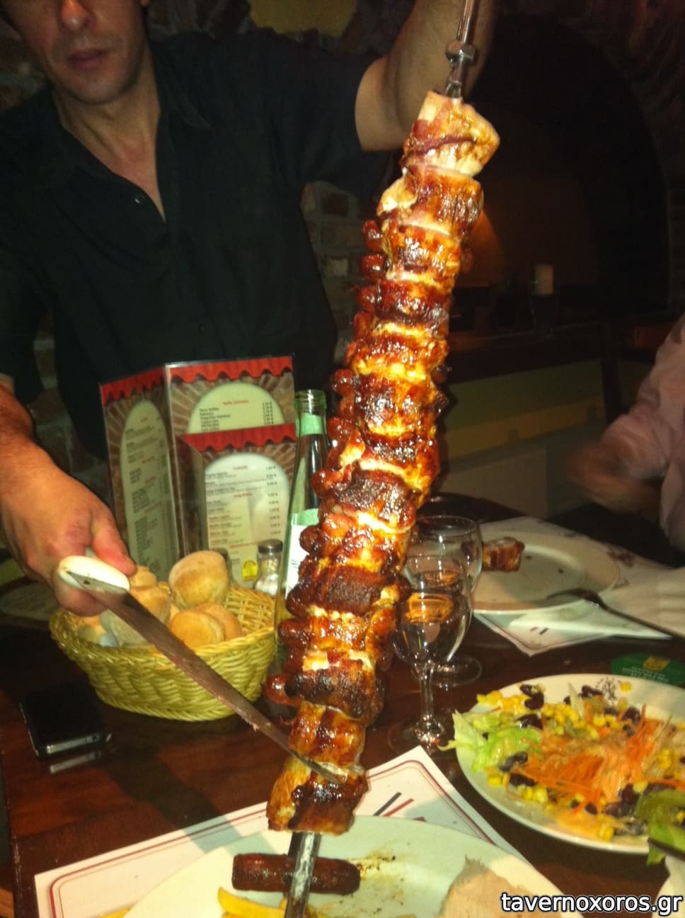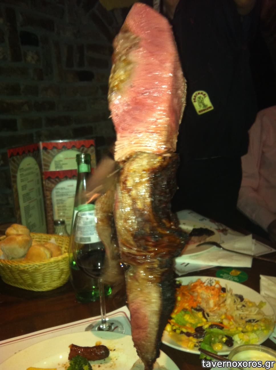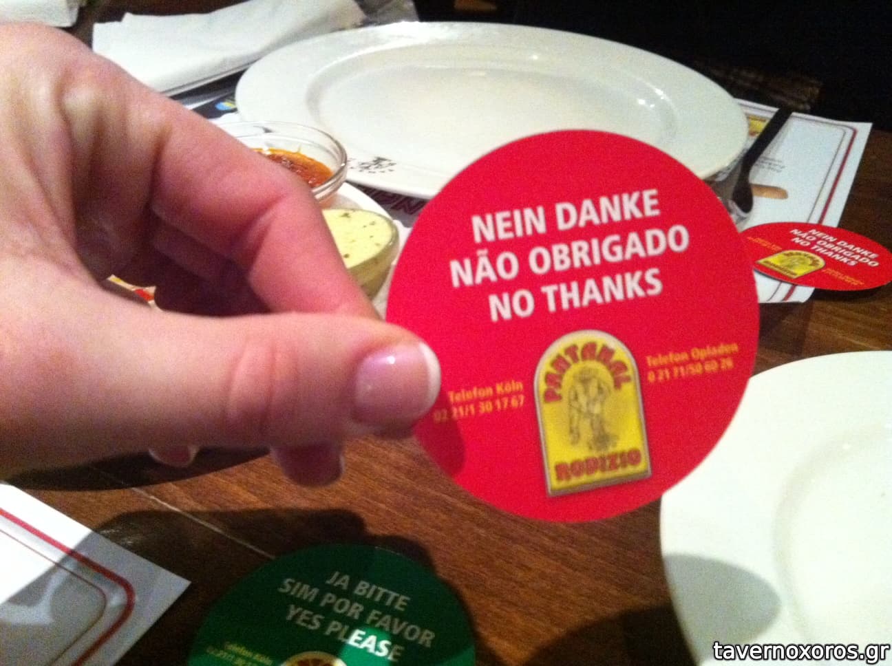 Ο μπουφές είναι πλούσιος, με οκ επιλογές, αλλά προσέξτε να μην χορτάσετε με τα ορεκτικά γιατί στην συνέχεια οι σούβλες είναι φοβερές&απεριόριστες! Μόνο αν γυρίσετε το καρτελάκι σε κόκκινο θα σταματήσουν να σας σερβίρουν (βλ.φωτό)!