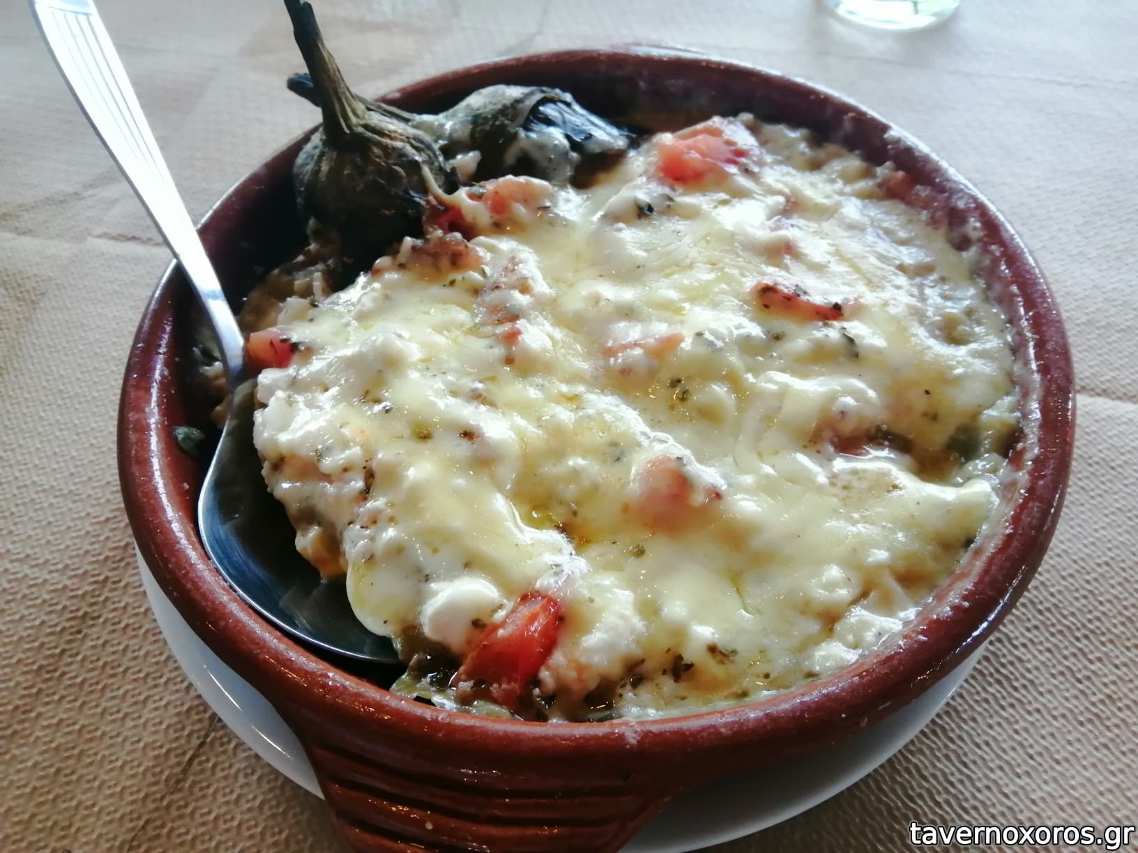 Μελιτζάνα στο πήλινο με φέτα και ντομάτα