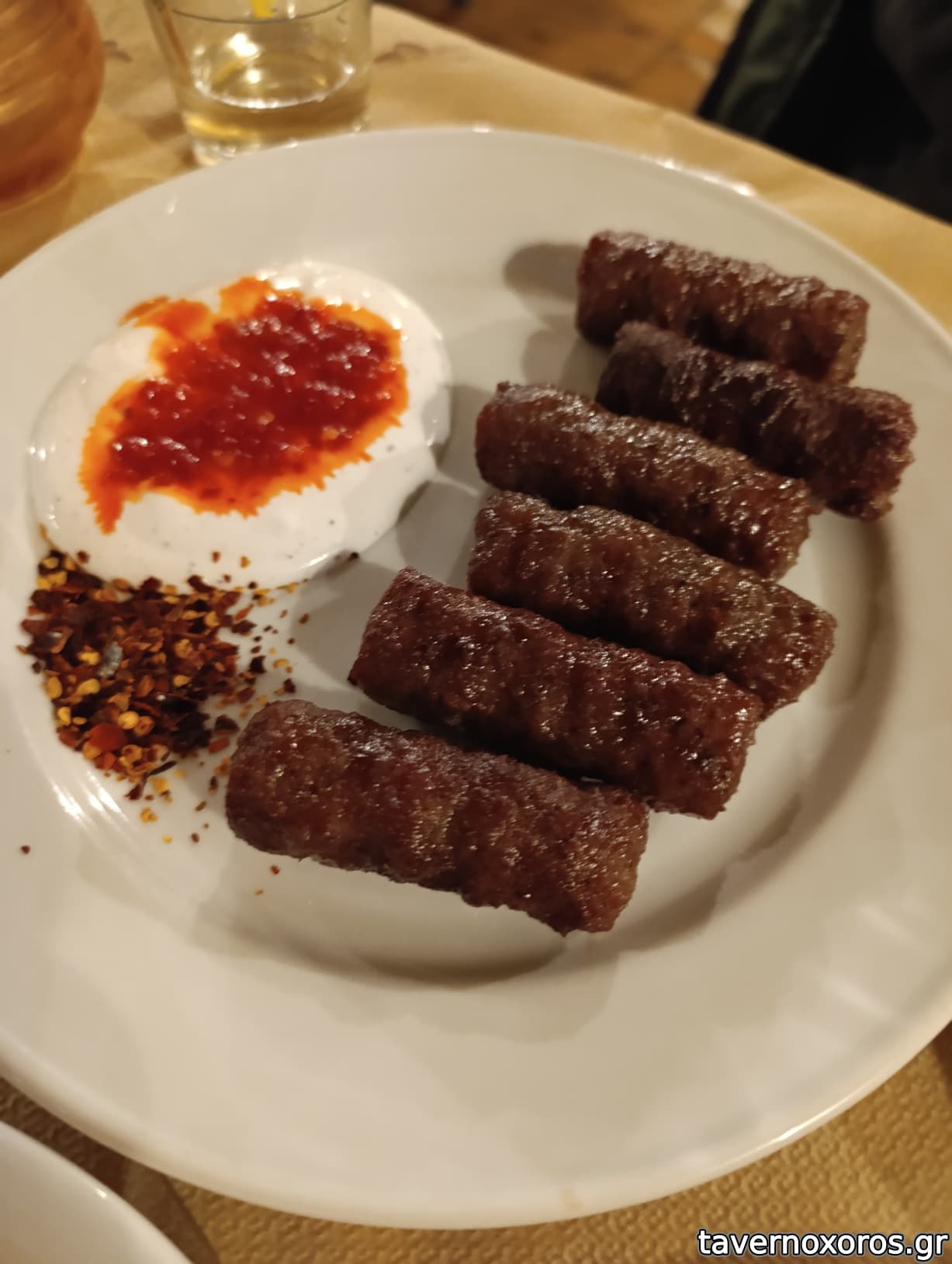 Στα του κρέατος, μεγάλο πλήγμα η απουσία της μοσχαρίσιας πανσέτας (που ήταν και το ήμισυ του τραβήγματος), αλλά σύντομα ανακάμψαμε με πολύ δυνατό σουβλάκι χοιρινό (με τα λιπάκια στρατηγικά τοποθετημένα), και οργασμικά γεμιστό μπιφτέκι. Τα σουτζουκάκια μια χαρά (αρνί-μοσχάρι), όπως και το λουκάνικο πέταλο.