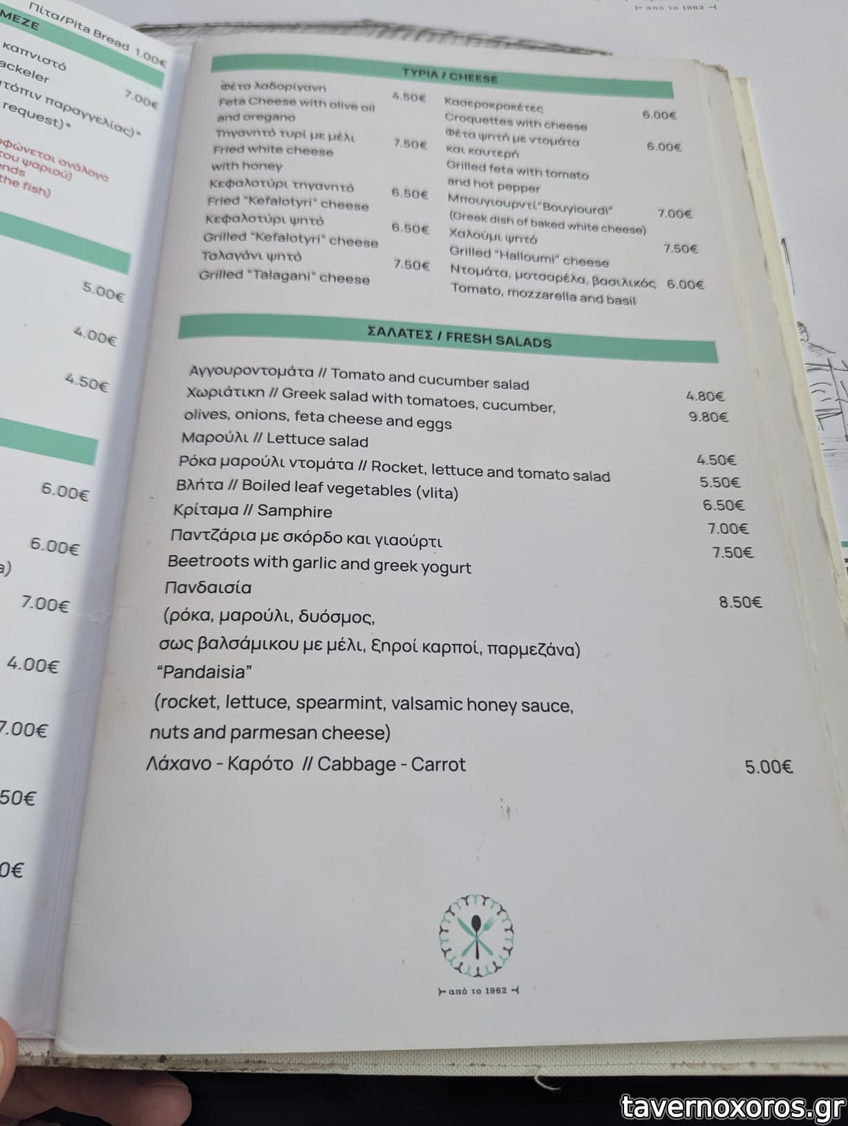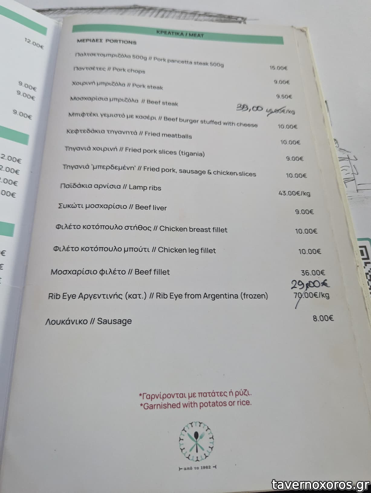 - Τιμές υψηλές, έχει χαθεί η μπάλα στο τουριστόπληκτο 1ο πόδι. Λόγω μεγάλης ποικιλίας, στα κρεατικά και μαγειρευτά υπάρχουν επιλογές με τις οποίες μπορείς να βγάλεις την βραδιά χωρίς να τσούξει ιδιαίτερα, αλλά την ψαροφαγία θα την απέφευγα (ενδεικτικά με τρόμαξε το 95€/κιλό το φαγκρί).