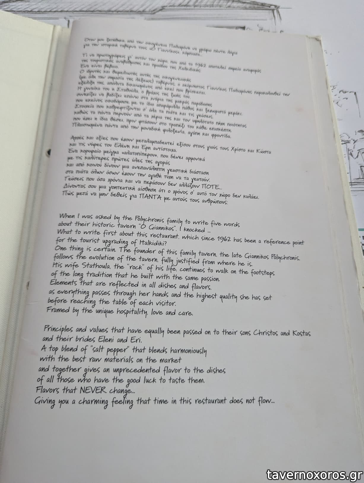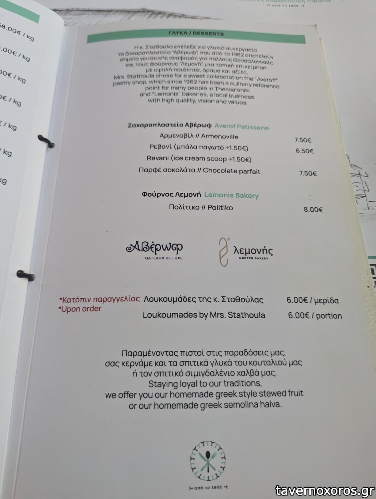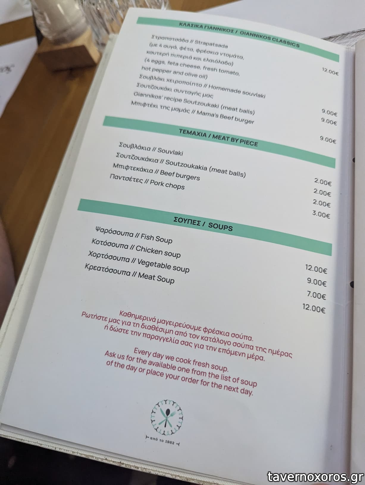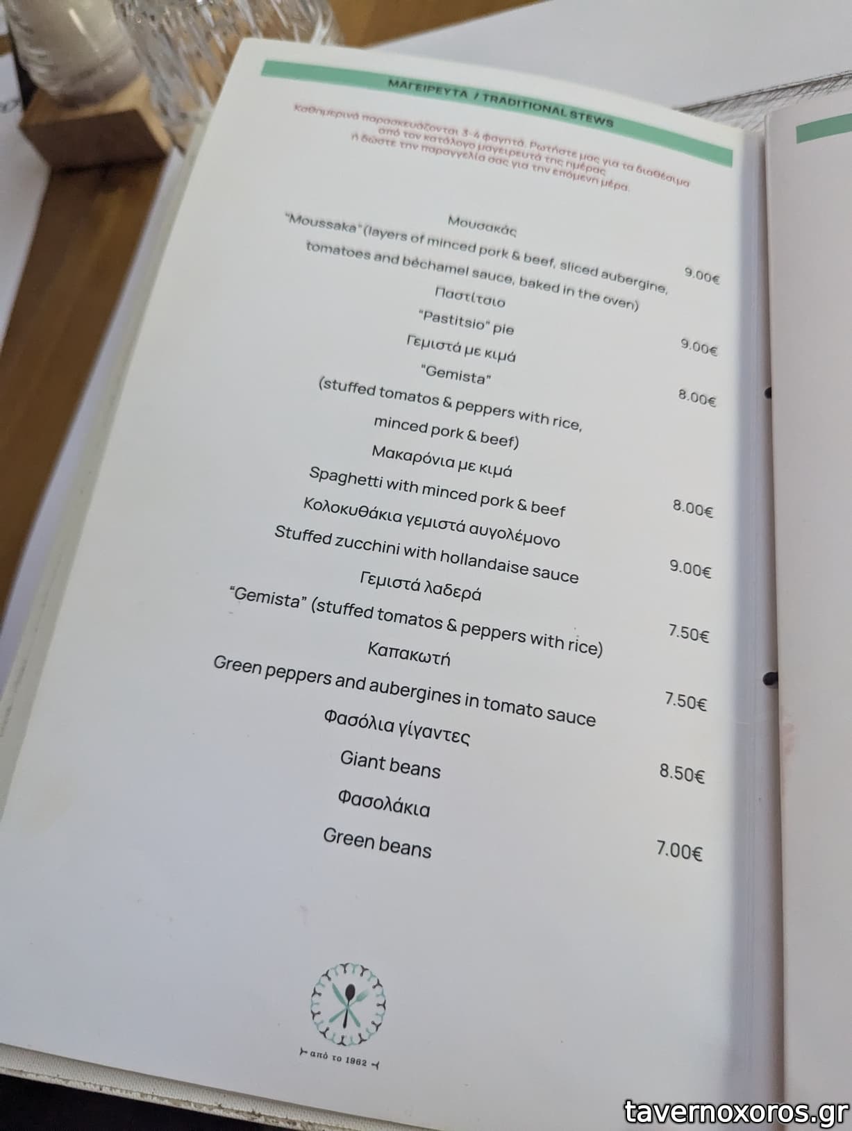 | Λέξεις κλειδιά | #μαγειρευτά, #γαριδομακαρονάδα, #καραβιδομακαρονάδα, #μουσακάς, #καπακωτή, #κεφτεδάκια, #σουτζουκάκια, #τηγανιά, #στραπατσάδα, #ντολμαδάκια, #ψαρόσουπα, #γαύρος μαρινάτος, #πάπρικα, #μανιτάρια, #μελιτζάνα τηγανητή, #κολοκυθάκια, #πιπεριές, #μελιτζανοκεφτέδες, #χαλούμι, #σουβλάκια, #μπιφτέκι, #πανσέτα, #κοτόσουπα, #μπιφτεκάκια, #βραστό, #χοιρινή, #μοσχαρίσια μπριζόλα, #πανσετομπριζόλα, #μπιφτέκι γεμιστό, #παϊδάκια, #συκώτι, #κοτόπουλο, #λουκάνικο, #φασόλια γίγαντες, #παστίτσιο, #γεμιστά, #μακαρονάδες, #φασολάκια, #μακαρόνια, #κοκκινιστό, #γιουβέτσι, #λαδερά, #μυδοπίλαφο, #χταπόδι, #γαρίδες, #καραβίδες, #σουπιές, #μύδια, #αστακοί, #μπακαλιάρος, #μπαρμπούνια, #κουτσομούρες, #γαύρος, #σαρδέλα, #αστακομακαρονάδα, #μπύρα βαρελίσια, #αρμενοβίλ, #ρεβανί |