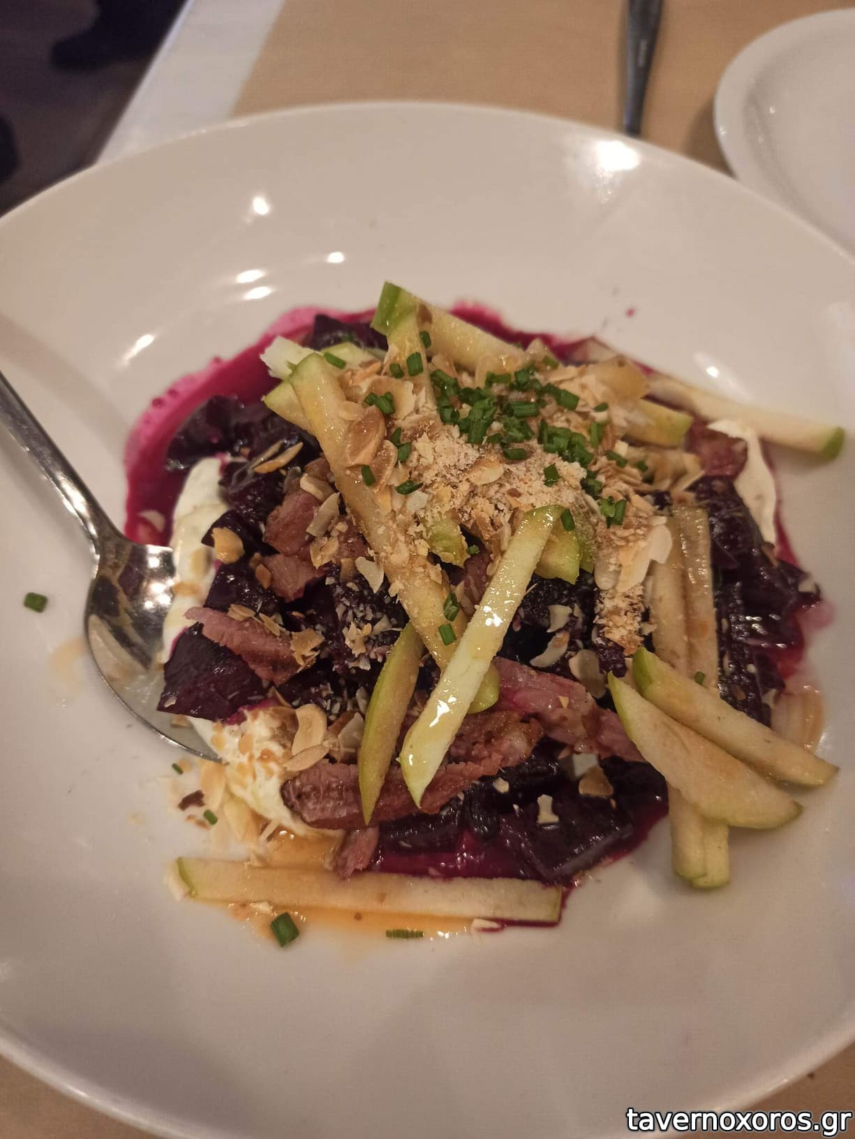Γλώσσα μοσχαρίσια με μήλο, σέλερι τουρσί και πουρέ σελινόριζας (9,5€ ωραίο)