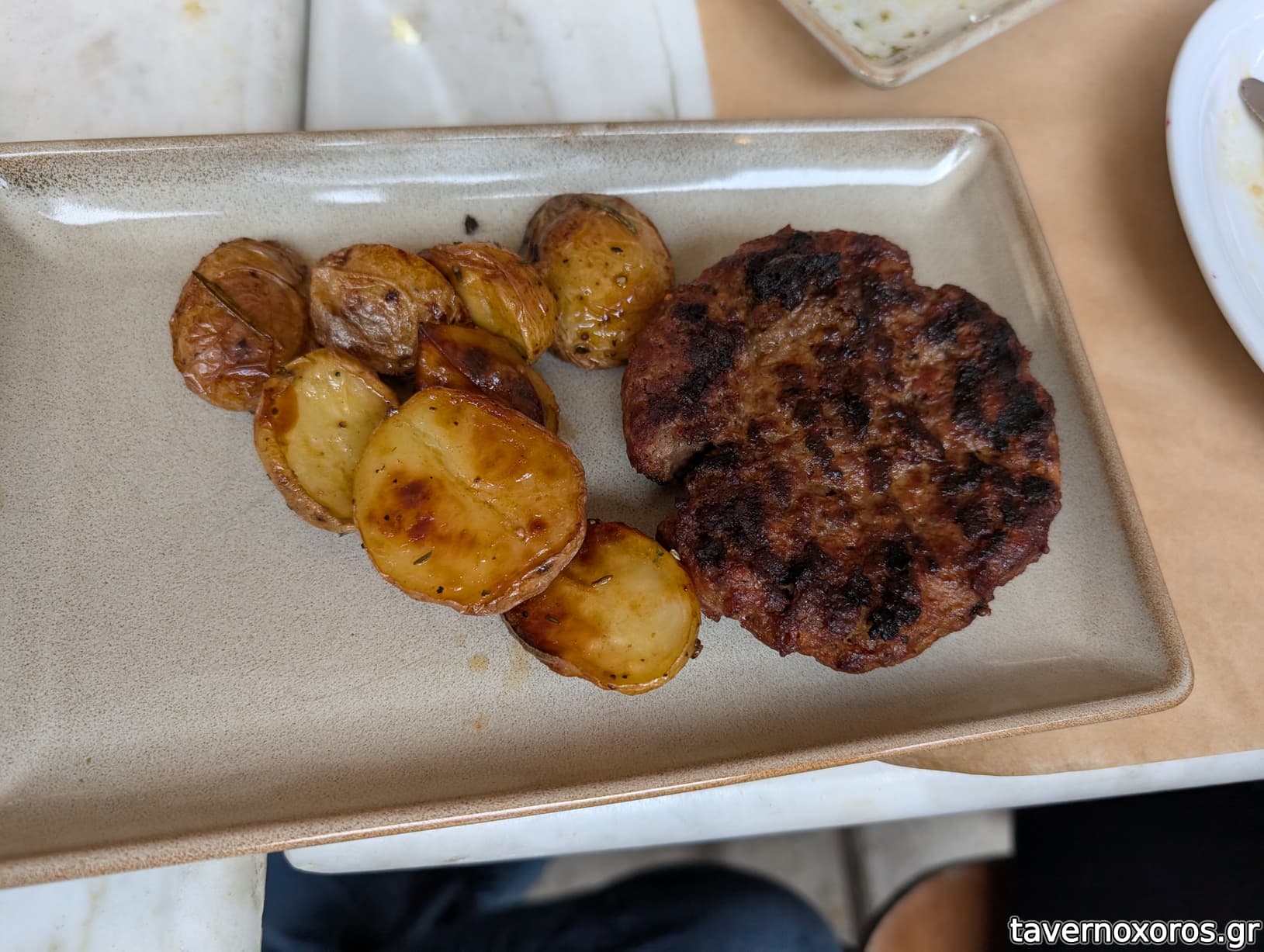 Από κυρίως δοκίμασα αρνίσια παϊδάκια με πατάτες baby, που ήταν πιάτο ημέρας, που ήταν καλά και συμπαθητικά, αλλά επίσης λίγο ανάλατα (οι πατάτες τα σπάγανε). Δοκίμασα και σπαλομπριζόλα που ήταν απίστευτα νόστιμη και ζουμερή, παρότι καλοψημένη -κλασσικά η μάνα μου-. Πρέπει να ήταν καλής ποιότητας το κρέας και πολύ μάστορας ο ψήστης για να γίνει τόσο καλό, ομολογώ ότι ενθουσιάστηκα.