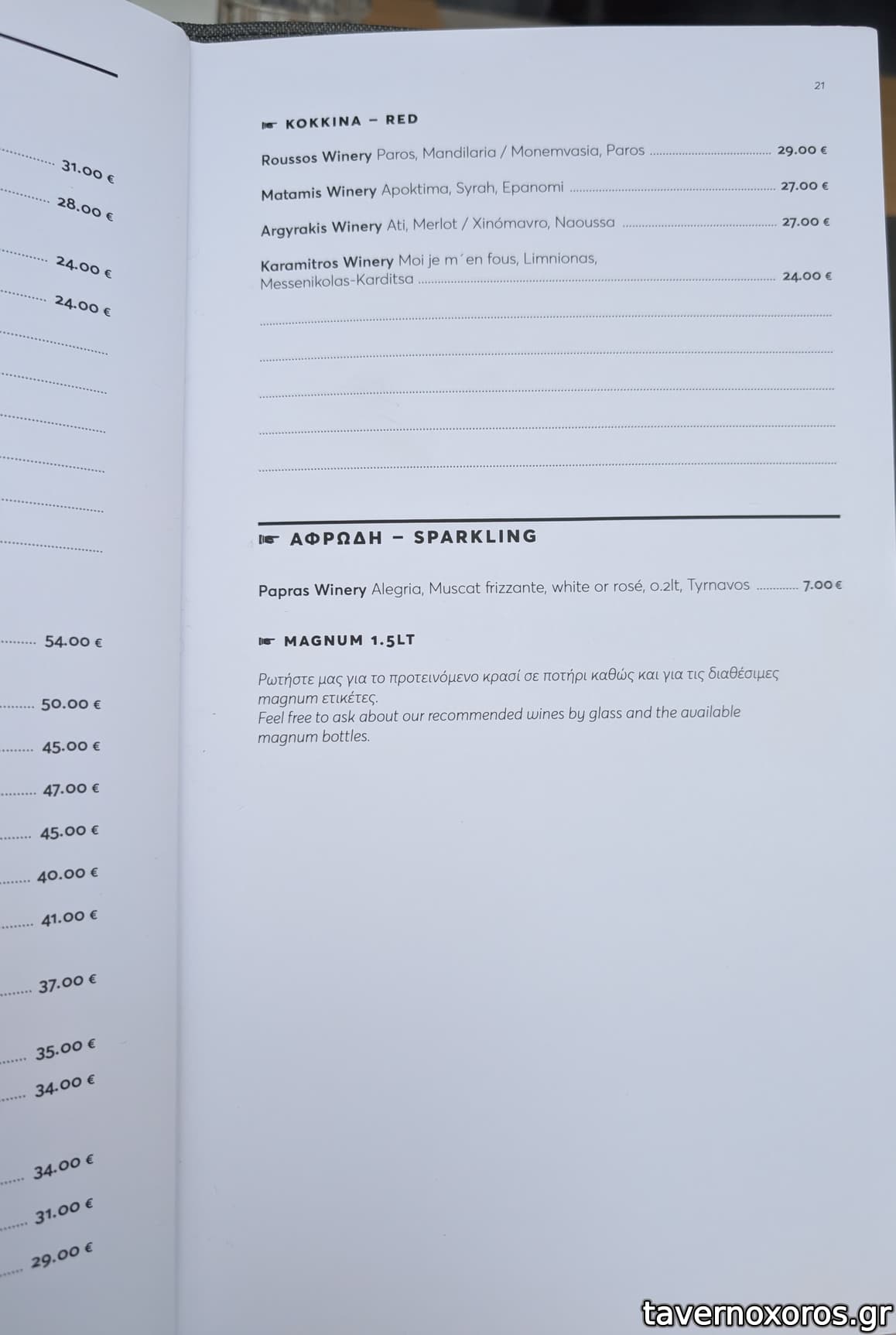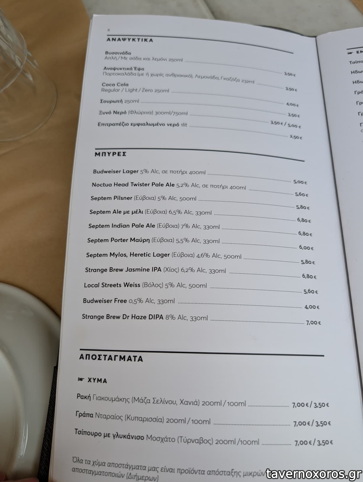 ΤΙΜΕΣ: τα παραπανω συν 2 μισολιτρες μπυρες και ενα ποτηρι κρασι 54ε, 27ε/ατομο