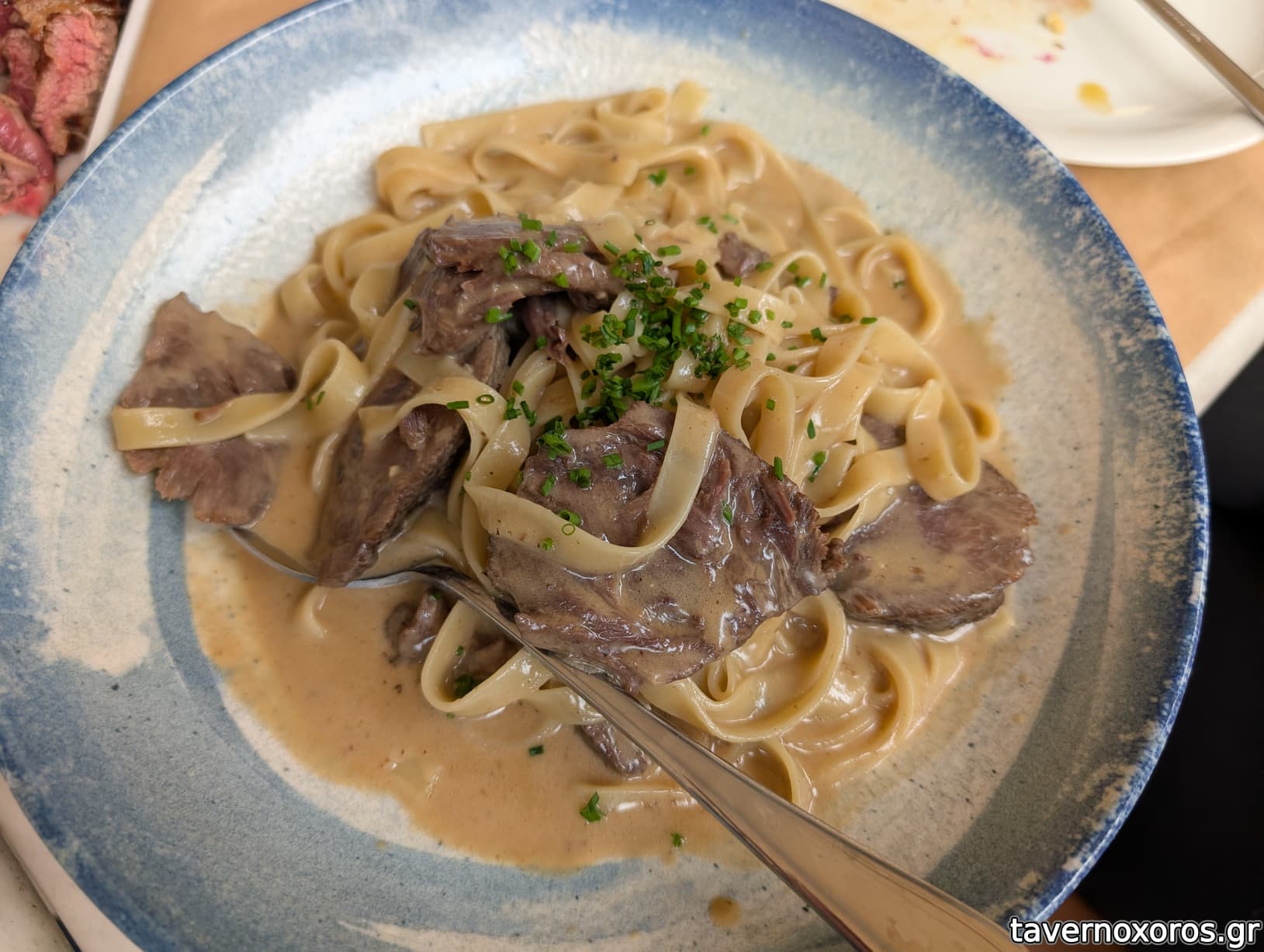 "Ταλιατέλες με μάγουλα black angus και κρέμα πορτσίνι" (καλό)