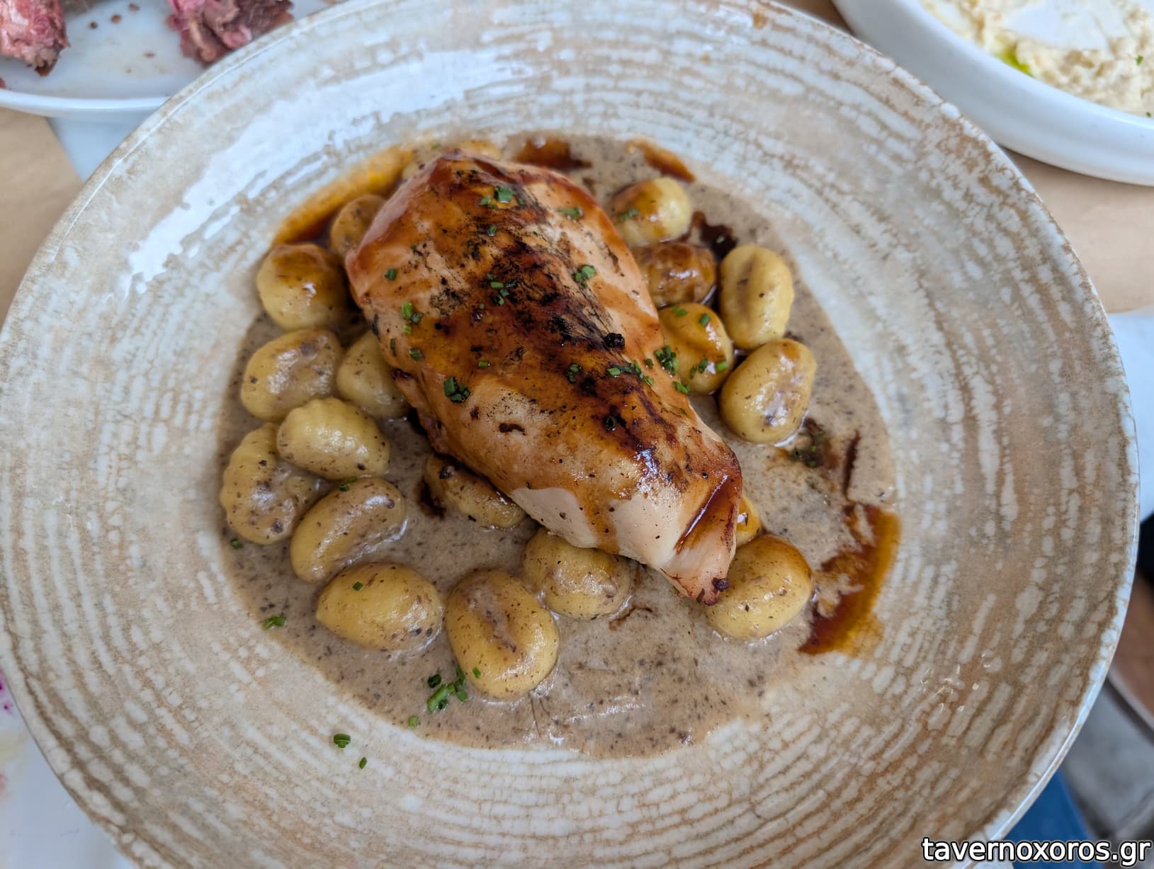 "Φιλέτο κοτόπουλο με βελουτέ μανιτάρι και νιόκι" (απλώς οκ)