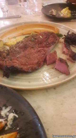 Η καπνιστή μπριζόλα ήταν απλά μια ψιλοσκληρή μπριζόλα (σε καμιά περίπτωση δεν έλιωνε στο στόμα), η βραστή σαλάτα ήταν νόστιμη (βλήτα, σέσκουλα) δεν προτιμήσαμε σταμναγκάθια λόγω σχολίων για πικράδα, οι πατάτες τραγανές. Ντολμαδάκια λιαλαντζί απλά ΟΚ