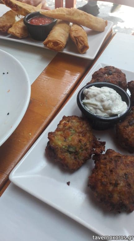 Παστουρμαδορολάκια (πολύ νόστιμα), κολοκυθοκεφτέδες (οκ)