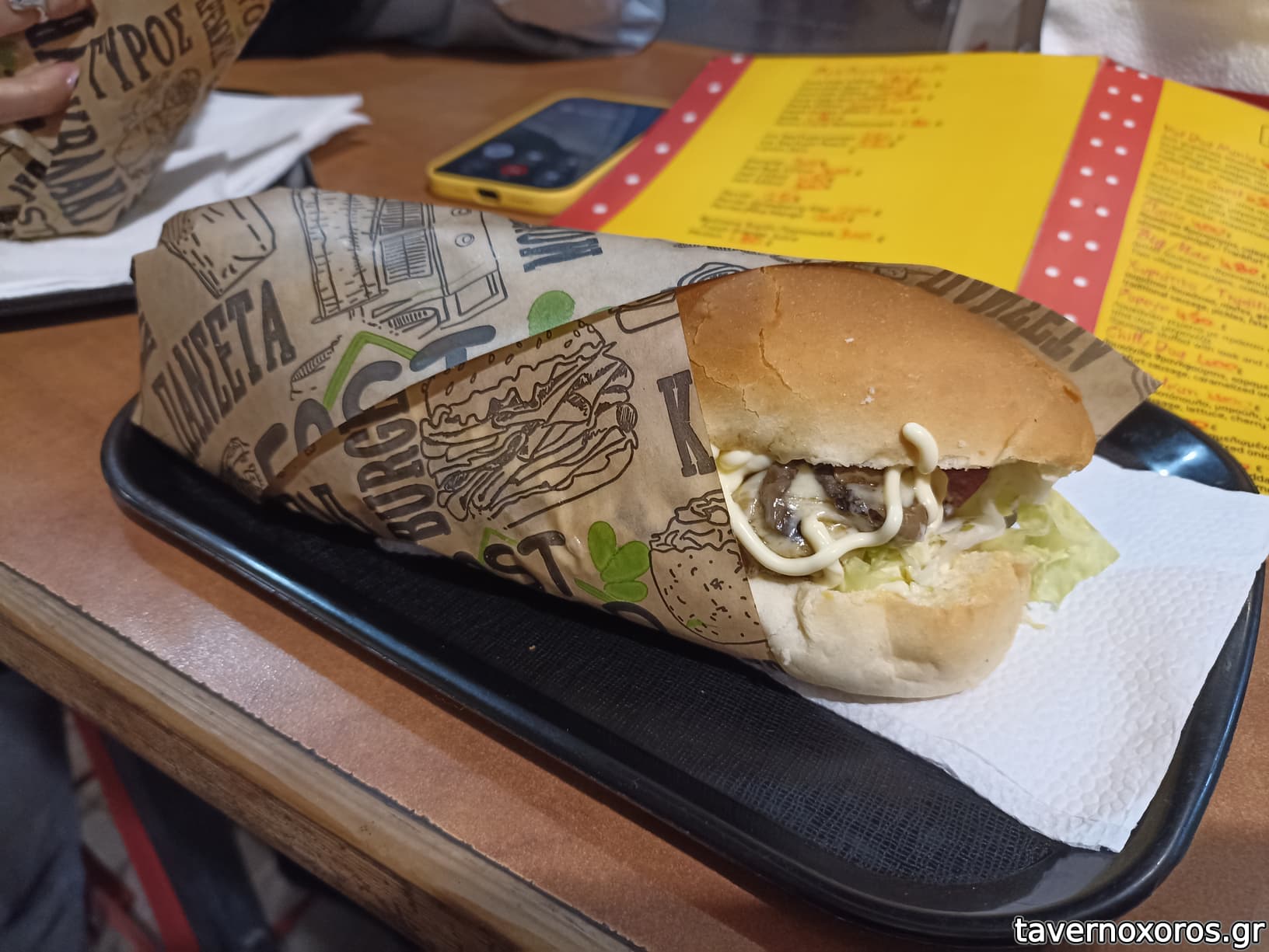 Ετοιμάζει, επίσης, burgers σε διάφορους συνδυασμούς (μια χαρά).