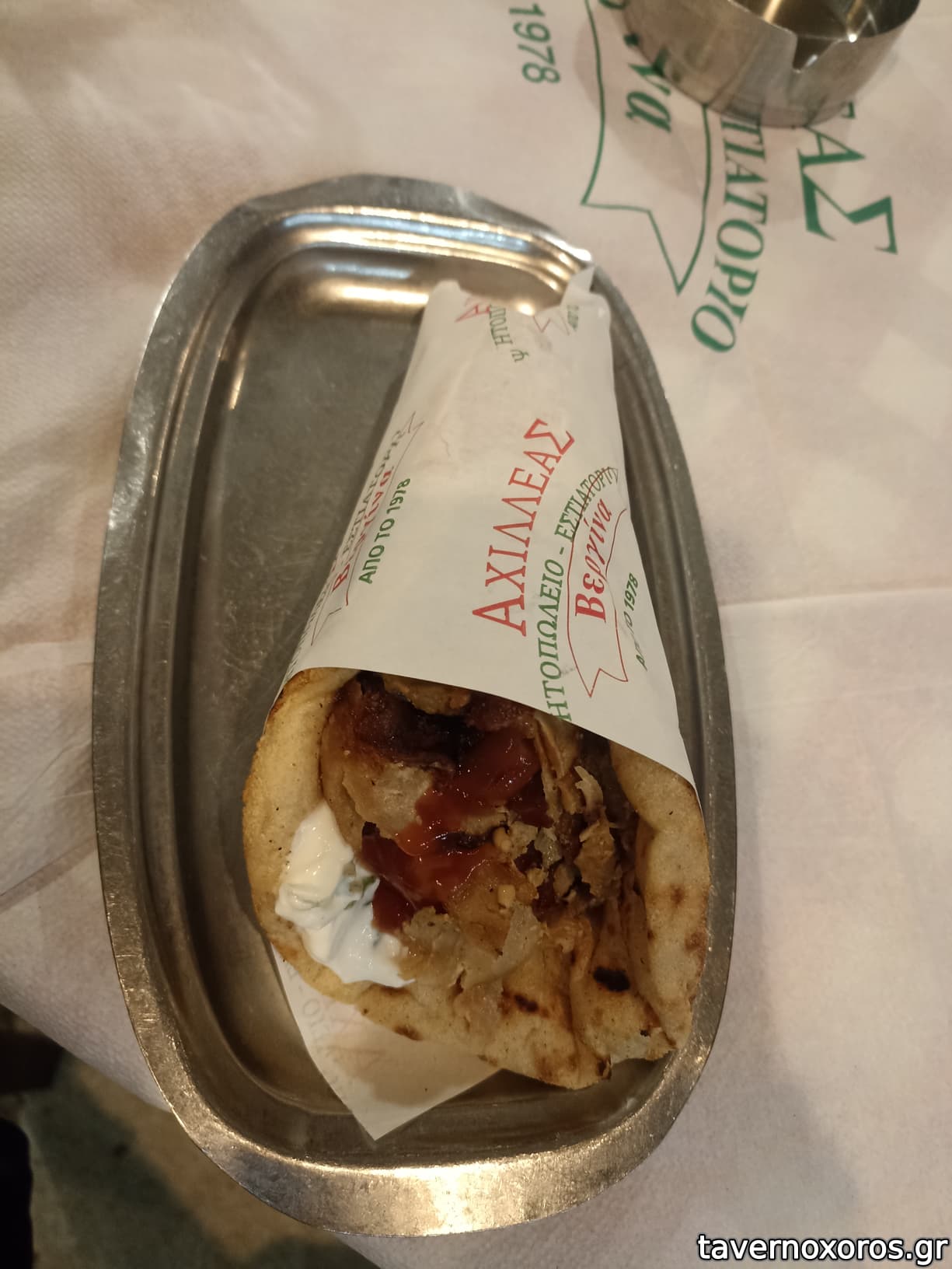 Γύρος χοιρινό (κρεάτινος, μεστός, ελάχιστα λιπαρός, στα 10€ η μερίδα)