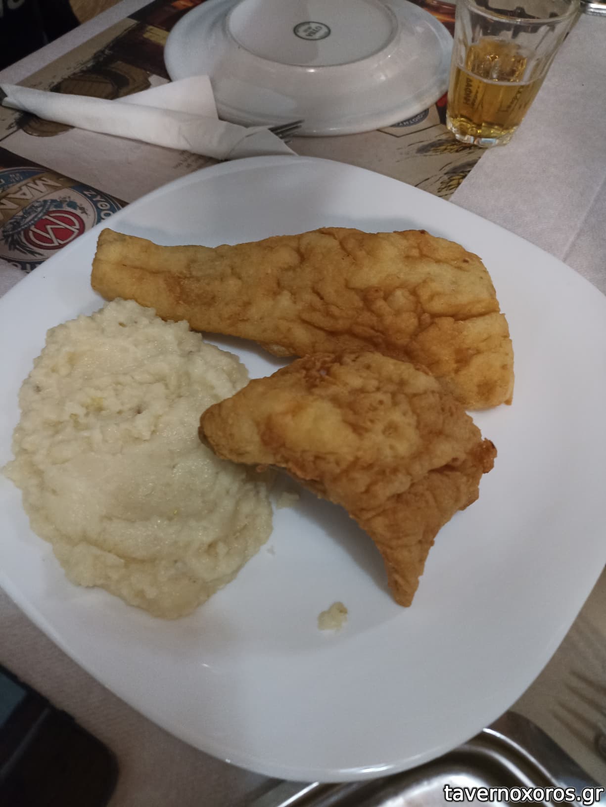 Μπακαλιάρος σκορδαλιά (το ψάρι σχετικά αδιάφορο, το ίδιο και η σκορδοπατάτα)