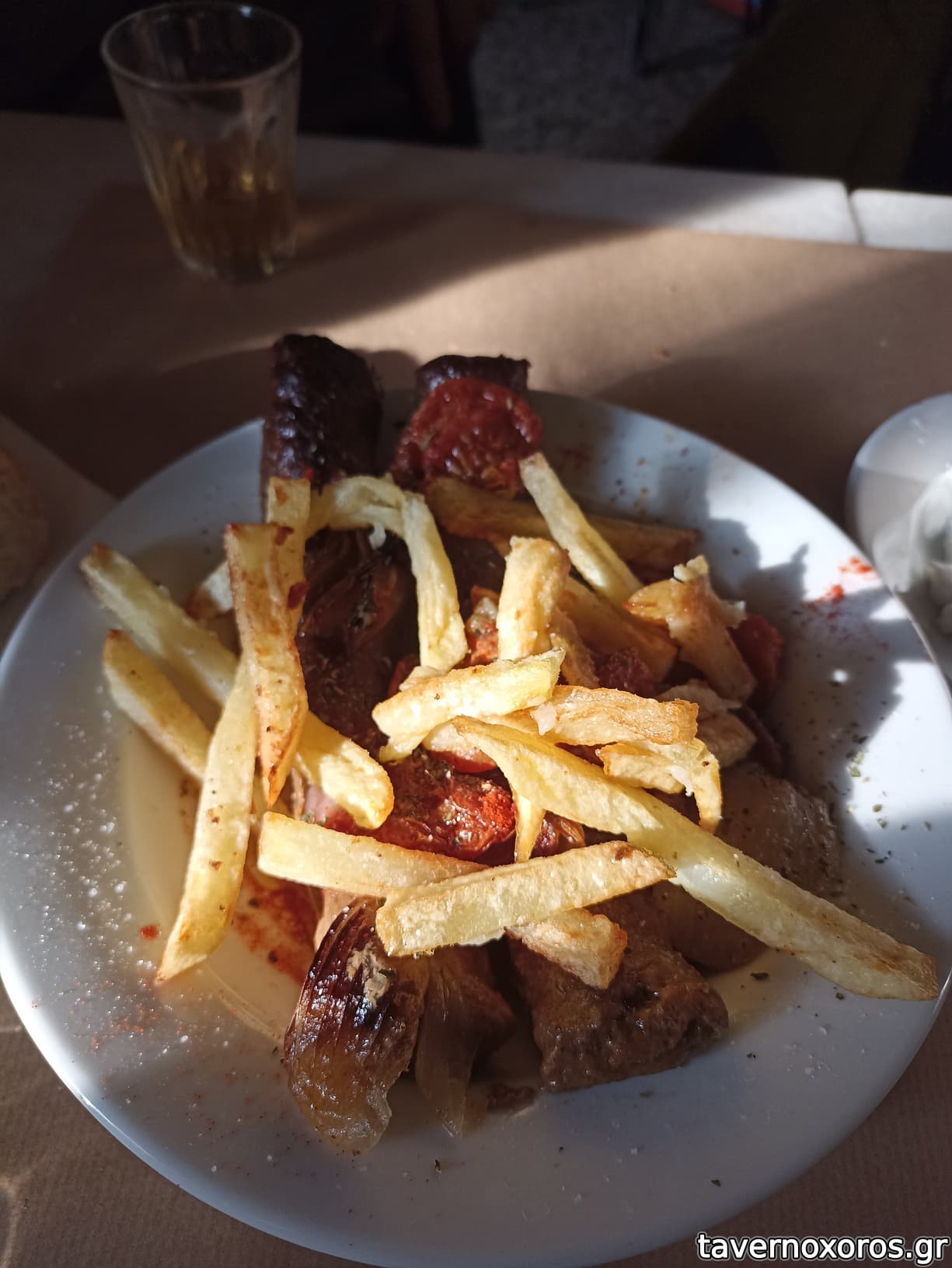 Καθίσαμε για τσίπουρο (χύμα άνευ, ευκολόπιοτο, μια χαρά), το οποίο έρχεται μαζί με ατομικό πιατάκι μεζέ. Το πενηνταράκι όπως το ζύγιασα, στα 2€.