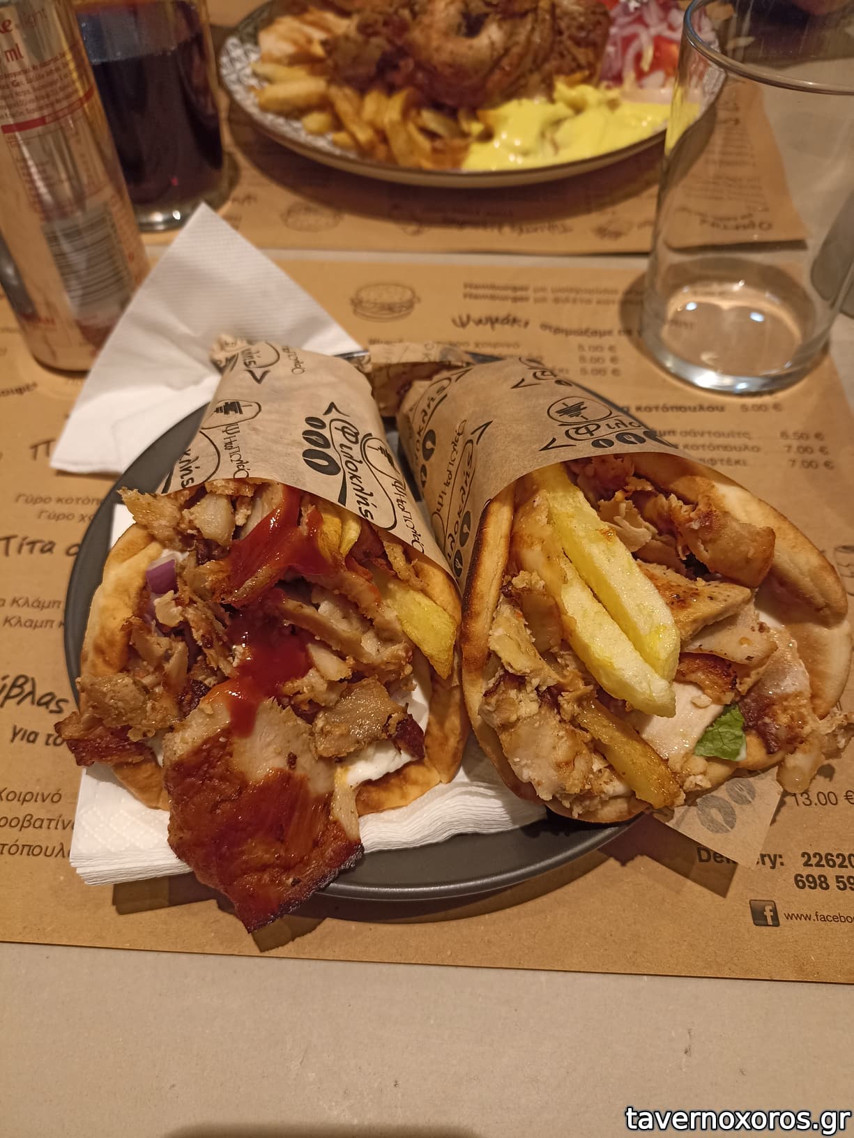 Άποψη τυλιχτών (η πίτα προβληματική, οι γύροι ημιαδιάφοροι, η κότα συγκριτικά καλύτερη)