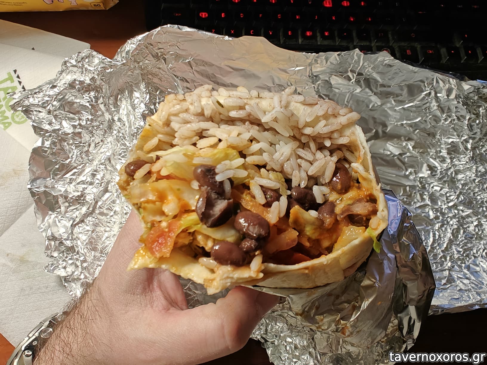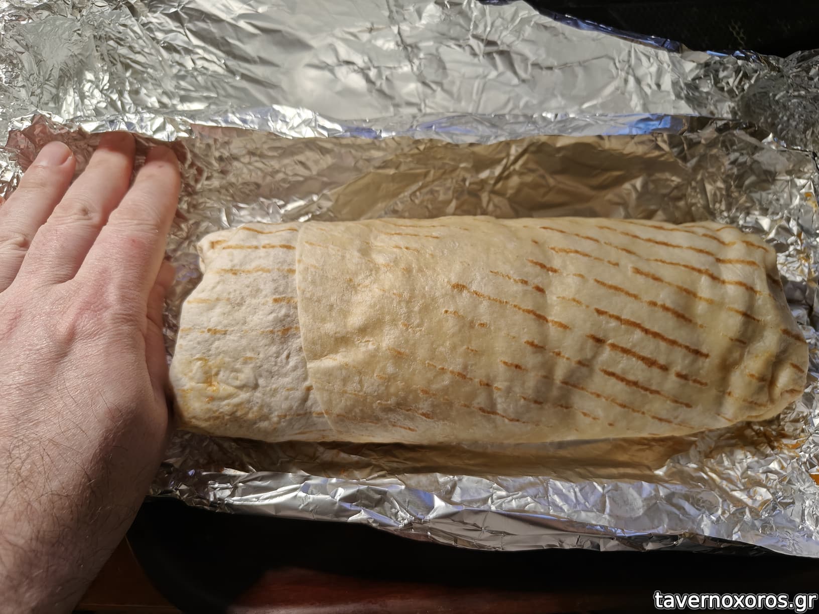 Σύγκριση μεγάλου μπουρίτο με το χέρι μου (είναι μεγάλο!)