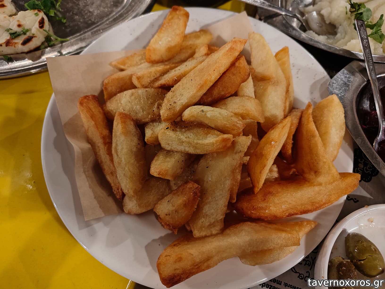 Πατάτες τηγανητές άπλετες, χεράτες και καλές αλλά αρκετά λαδωμένες.