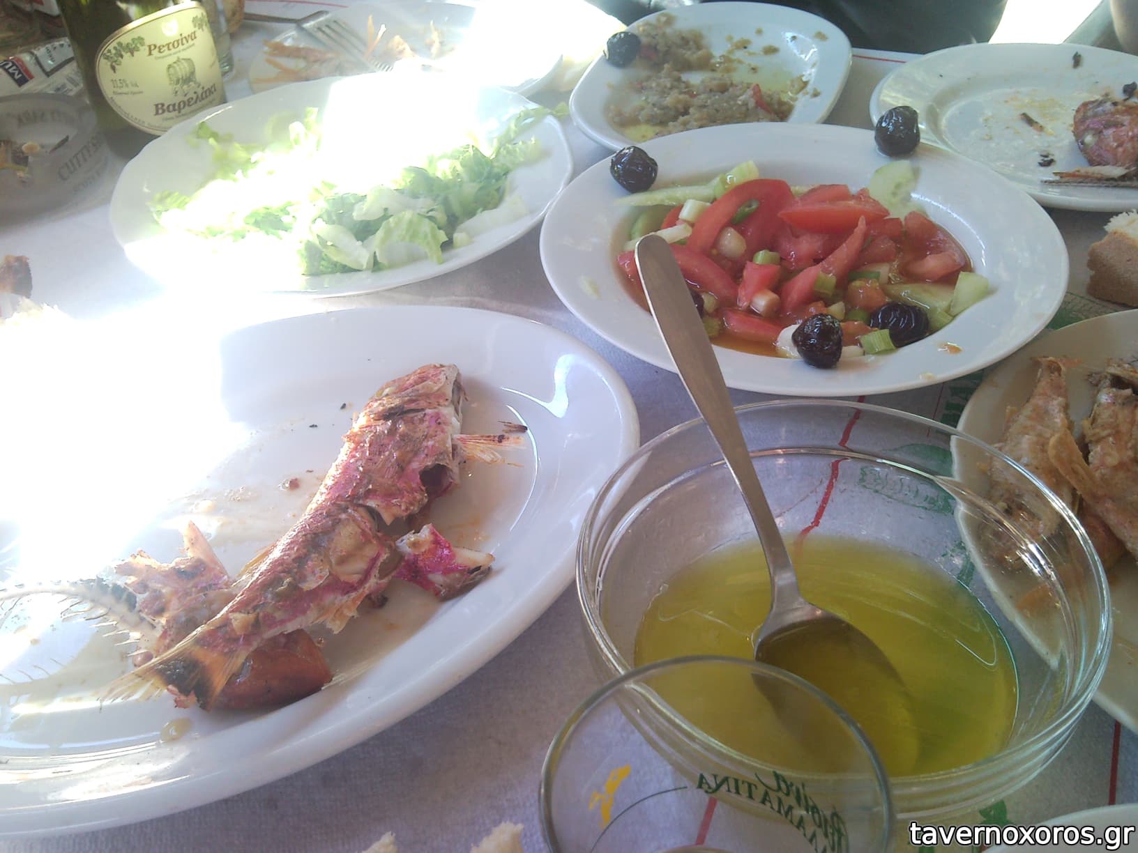 Λοιπόν, ό,τι έφαγα ήταν από καλό εώς πολύ καλό... Ο ιδιοκτήτης σούπερ ευγενικός. Ξεκίνησε με το "θέλετε ψάρι, θα σας ετοιμάσω εγώ. μην ανησυχείτε" κάτι το οποίο δεν το γουστάρω καθόλου... κοινώς να μην κάνουμε παραγγελία, να μας βάλει αυτός ότι θέλει... τελικά ο τύπος με έπεισε όμως... κι είχε δίκιο και μεράκι και μας έφερε ό,τι ακριβώς χρειαζόμασταν... δεν το κανε δηλαδή από χαζομάρα, αλλά από όρεξη... μας έφερε 1 σαλάτα, μια "ποικιλία"¨από ψαράκια τηγανιτά (σκάρους-τέλειοι- μπακαλιαράκια, μικρά κουτσουμουράκια και μύδια), 1 πατάτες τηγανητές και μια ποικιλία βραστά σαλάτα (που τελικά έγιναν 2)... και γι αυτά σύν 1 λίτρο κρασί πληρώσαμε 28 ευρώ (3 άτομα)... τίποτα θα έλεγα εγώ... Το περιβάλλον οκ... Θα ξαναπάω
