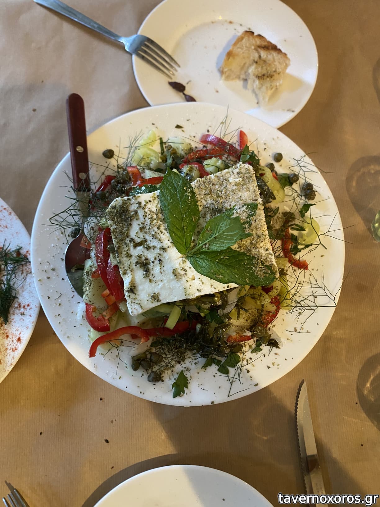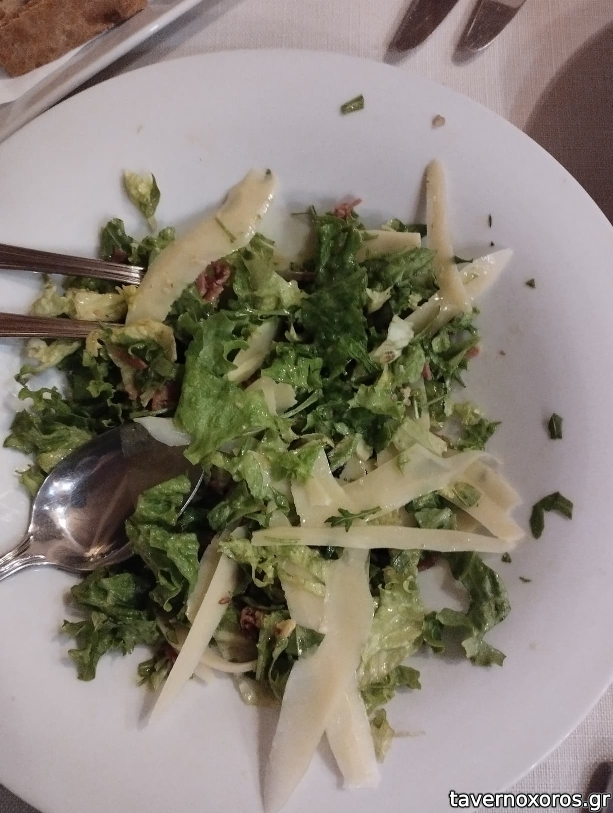 σαλάτα όμορφη Θεσσαλονίκη που είναι πράσινη σαλάτα με ντοματινια και τυροκαυτερη με φρυγανισμενο ψωμί στα 7,