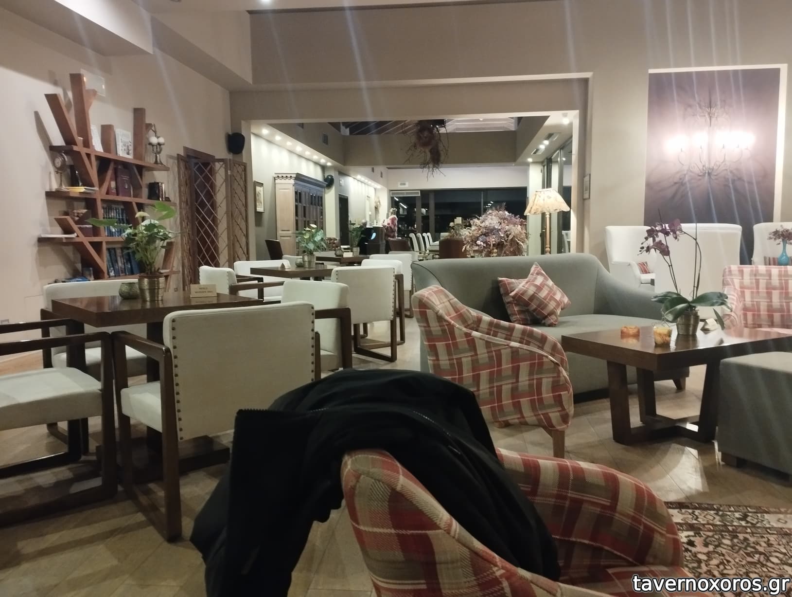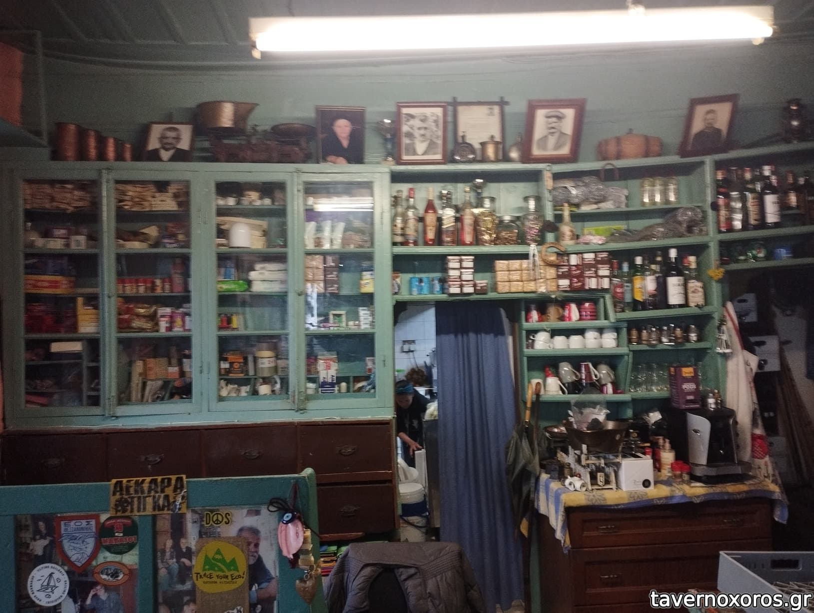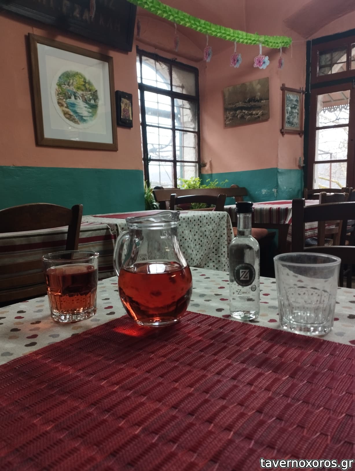 Στα του χώρου, ένα καλαίσθητο, ζεστό μαγαζί με σκούρο ξύλο και πέτρα παντού. Ακόμη και οι τουαλέτες είναι προσεγμένες στη λεπτομέρεια. Χωρίς όμως να χάνει την ταυτότητα του αυθεντικού χωριάτικου χώρου εστίασης, με τη σόμπα του κ την ιστορία του αποτυπωμένη στα ράφια και τους τοίχους. Στους τοίχους στο υπόγειο που είναι και η τουαλέτα, θα δείτε και όλη τη μπουρζουαζία της πολιτικής σκηνής του τόπου, να χαριεντίζεται με τον πολύ συμπαθητικό ιδιοκτήτη που ξεπροβοδιζοντας μας, μας μίλησε πολύ γλυκά και ανθρώπινα.