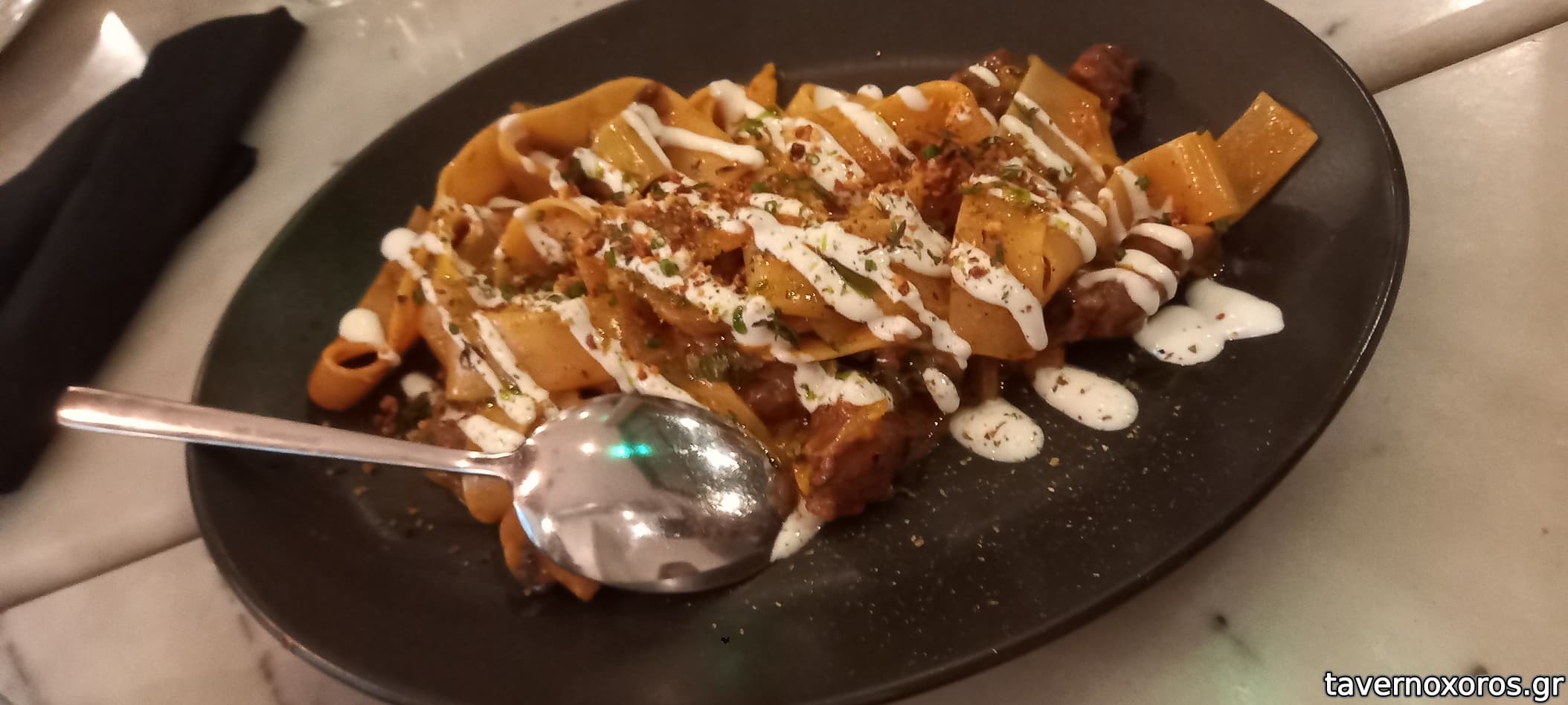 Από τα πιάτα ημέρας αυτό που δοκιμάστηκε επανειλημένα ήταν η εξαιρετική κατσικομακαρονάδα και μια σαλάτα παραλλαγή της ceasar'